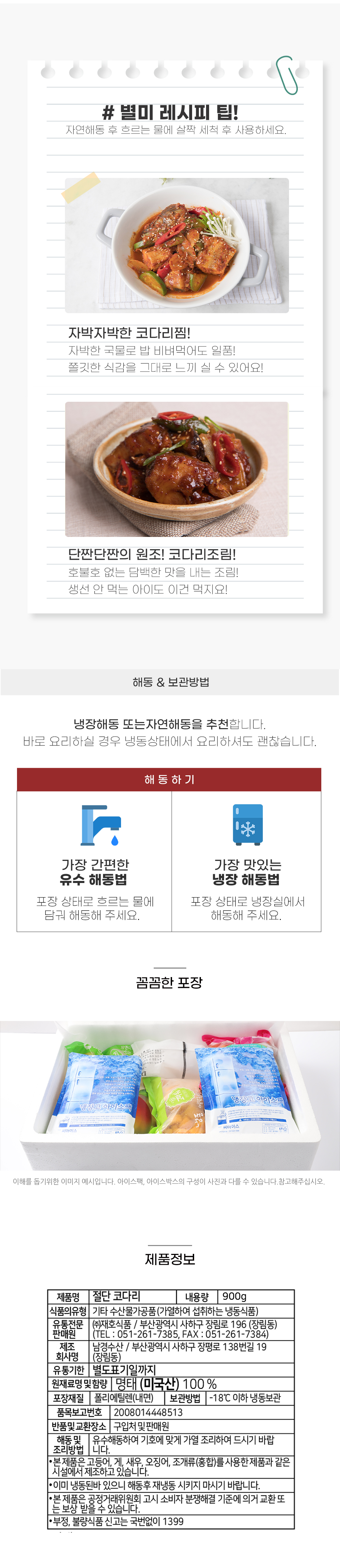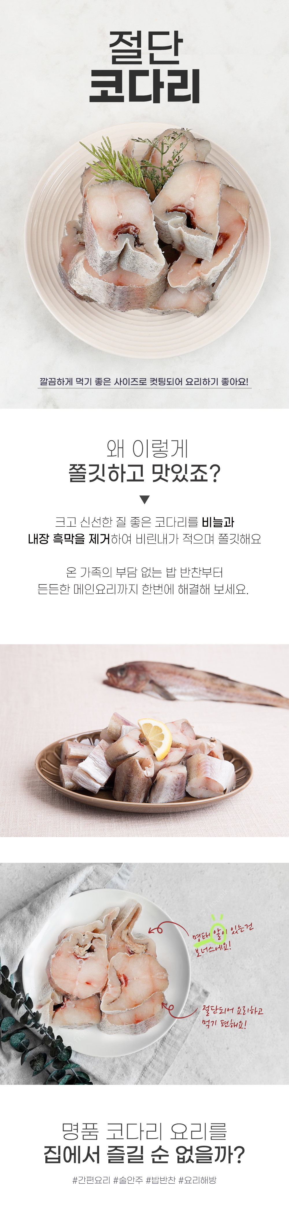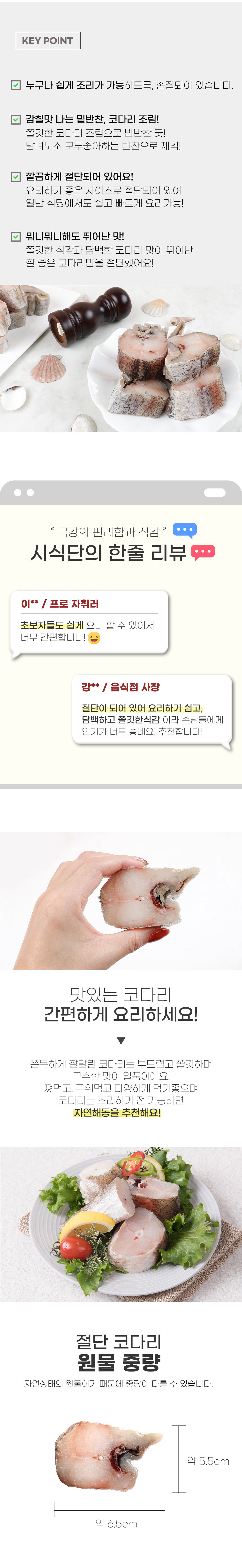크고 신선한 질 좋은 코다리를 비늘과 내장 흑막을 제거하여 비린내가 적으며 쫄깃해요~!