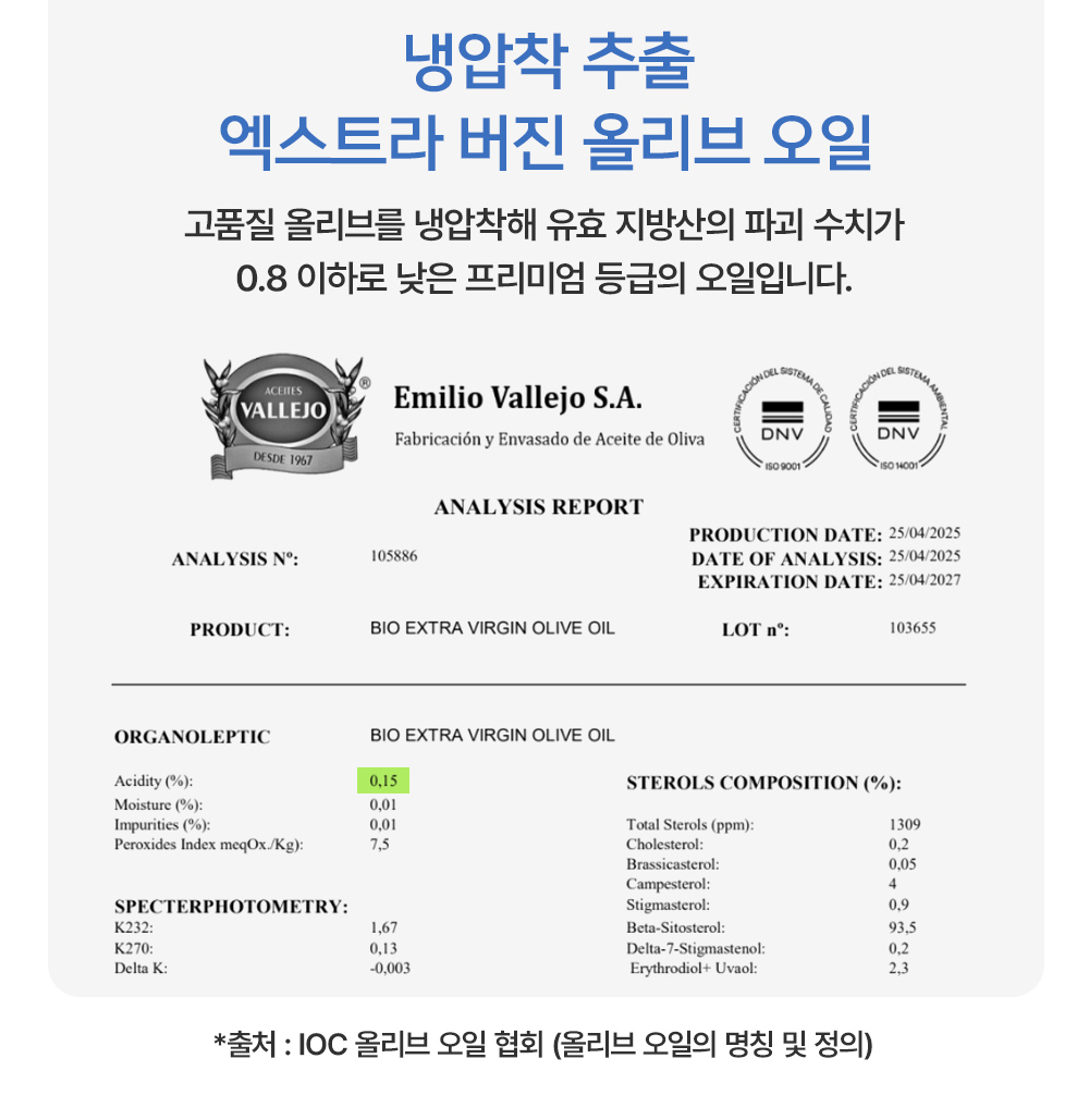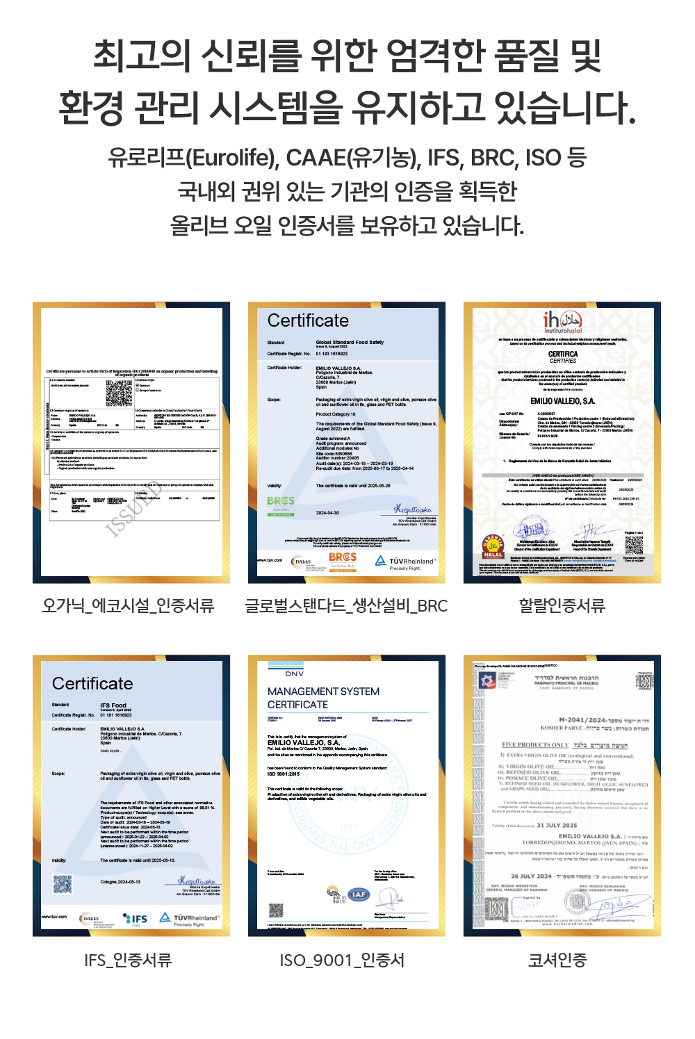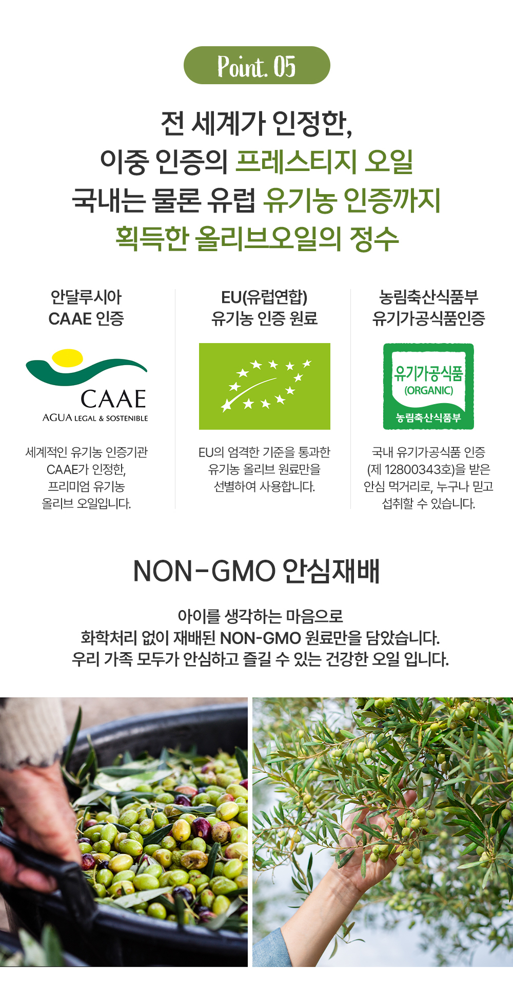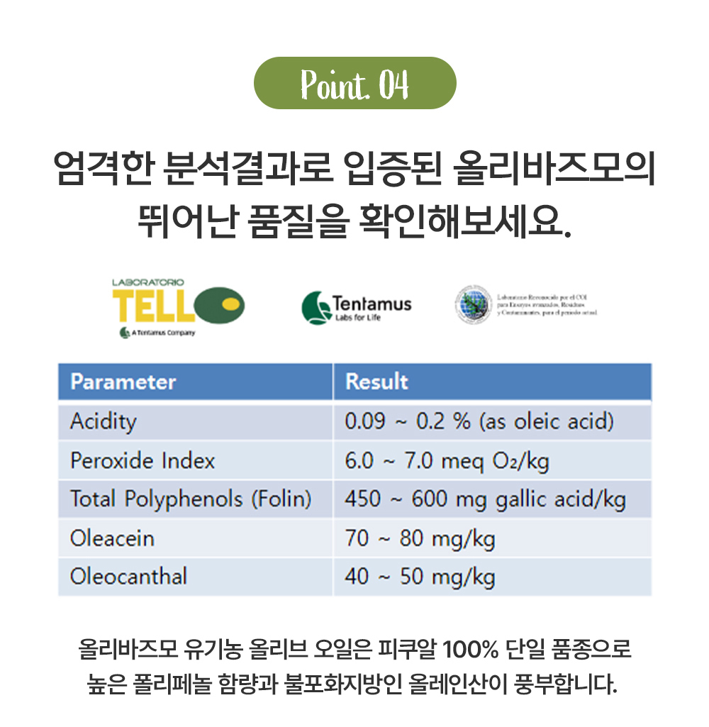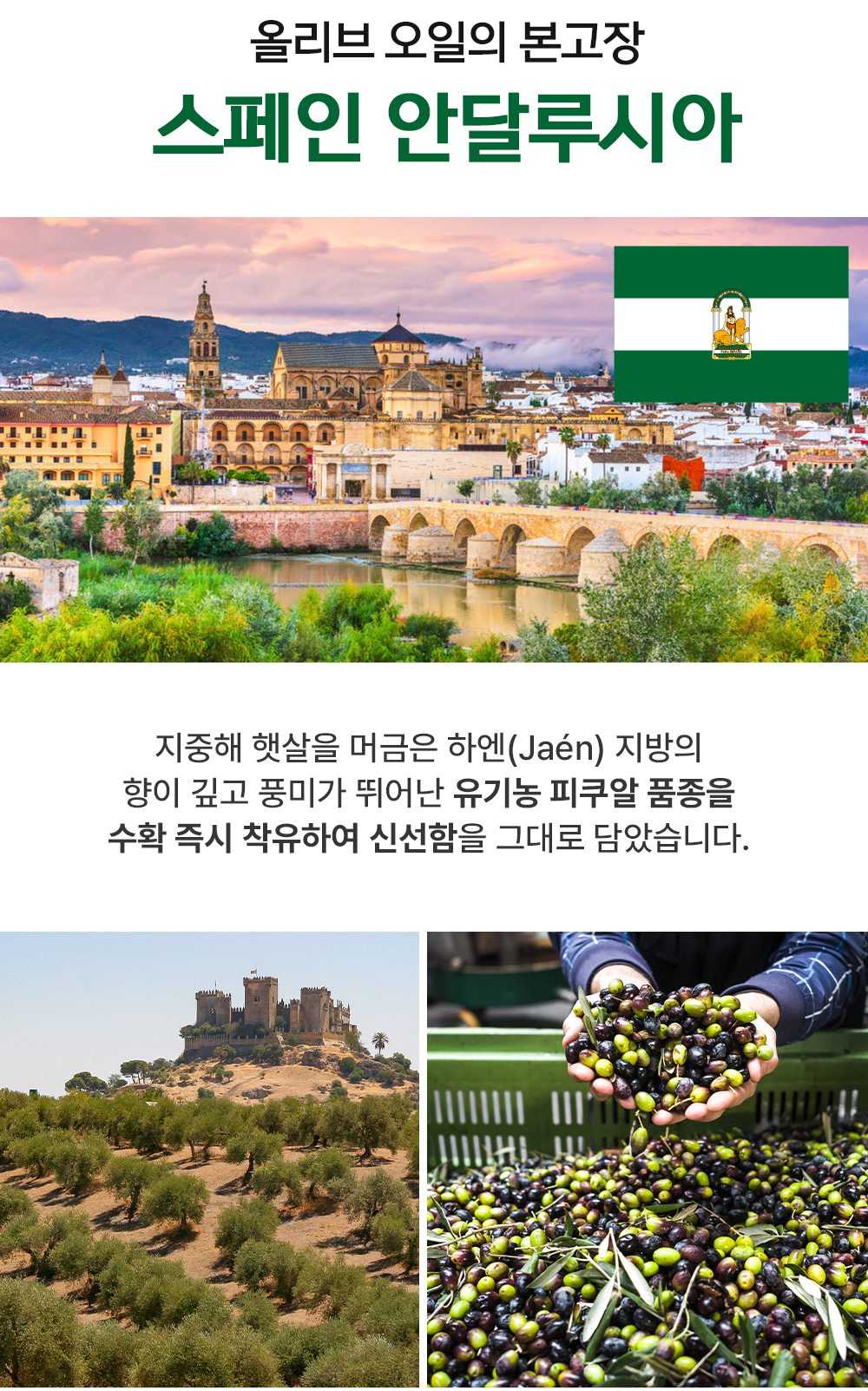 유기농 엑스트라버진 올리브오일 100% (스페인산, 올리브 100%)