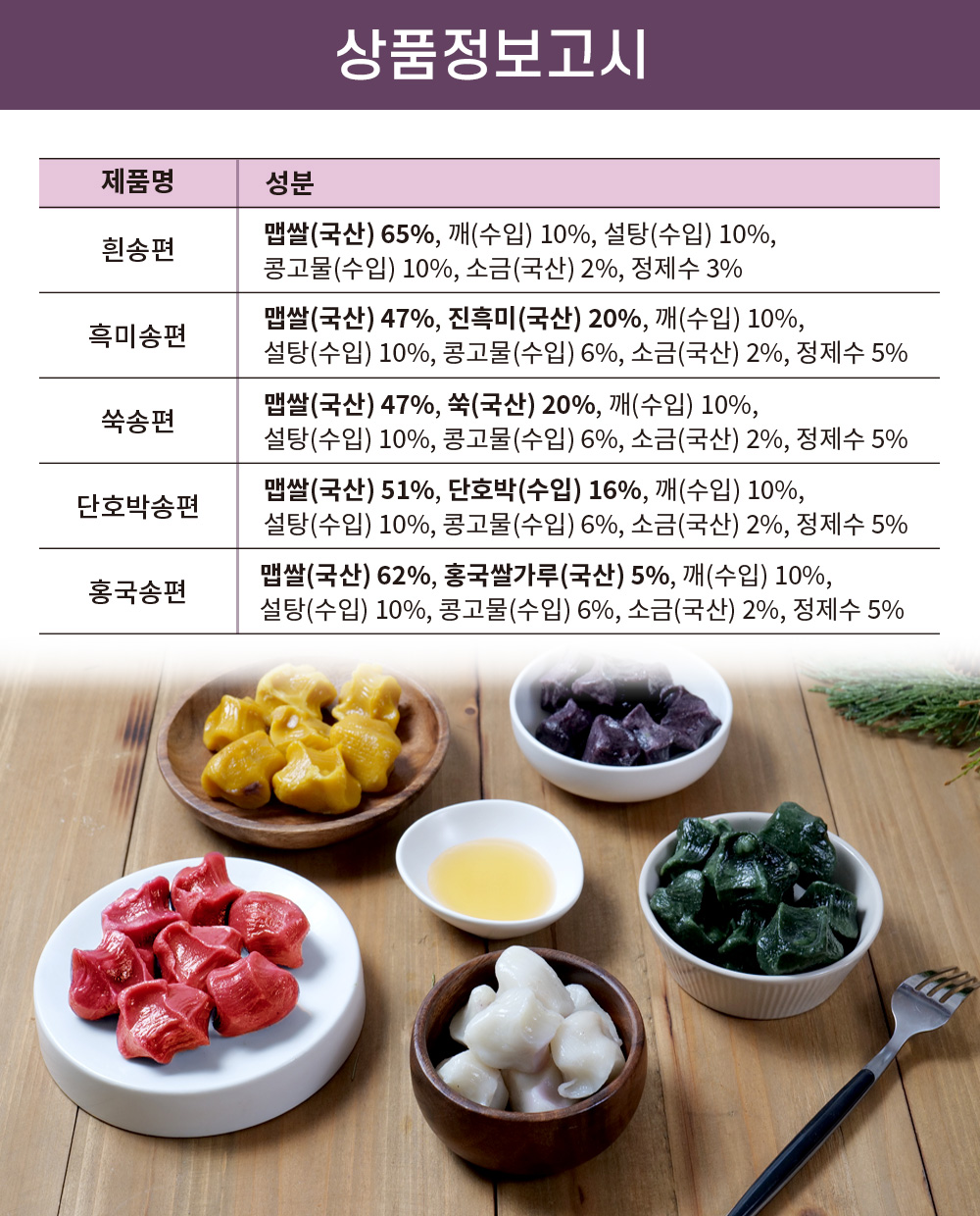 오색송편: 냉동보관3개월/녹두송편:냉동보관6개월