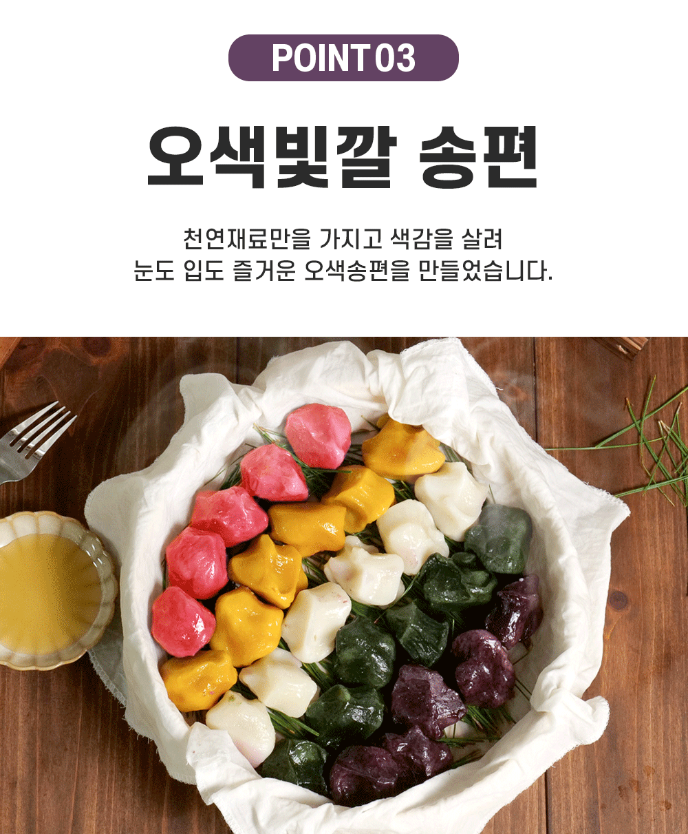 녹두송편1kg 17~20내외 / 오색송편1kg 20~25개내외