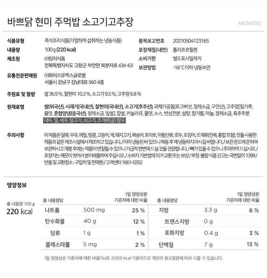 바쁘닭 현미주먹밥 소고기고추장 100g (100g×5팩) 수량빼기 수량추가 9,000 원 총 수량 1 개 9,000 원 구매옵션 닫기 찜하기 추가 찜하기 삭제 구매후기 1,909 상품상세 정기구독 장바구니 정기구독 장바구니 구매하기 정기배송 장바구니