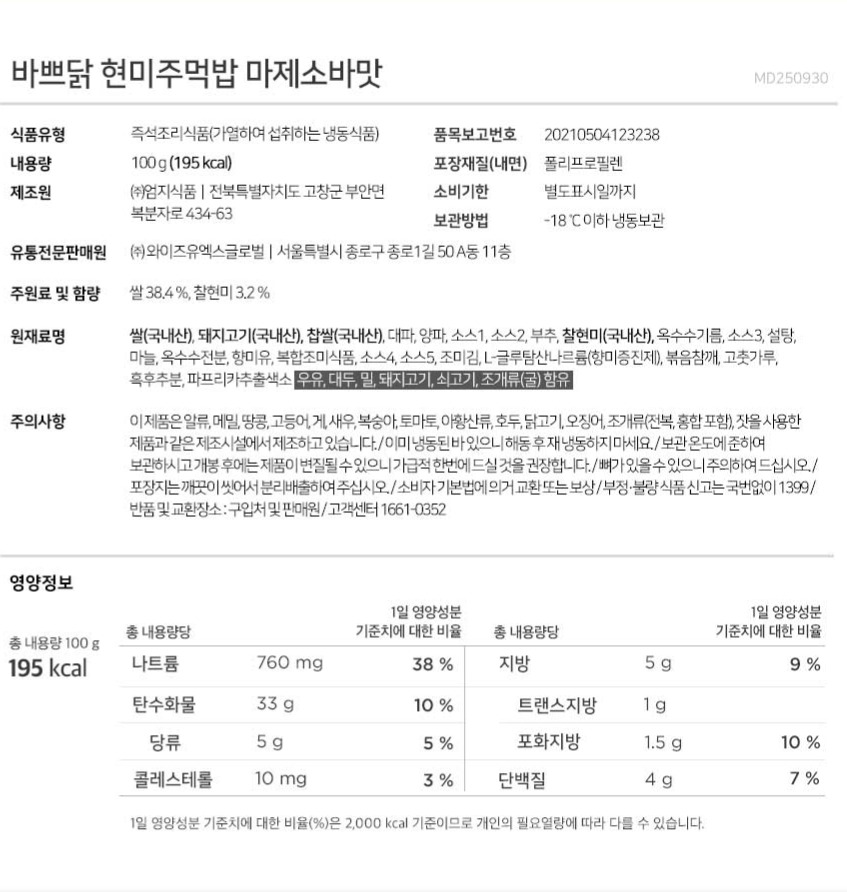 바쁘닭 현미주먹밥 마제소바맛 100g (100g×5팩) 수량빼기 수량추가 7,900 원 총 수량 1 개 7,900 원 구매옵션 닫기 찜하기 추가 찜하기 삭제 구매후기 49 상품상세 정기구독 장바구니 정기구독 장바구니 구매하기 정기배송 장바구니