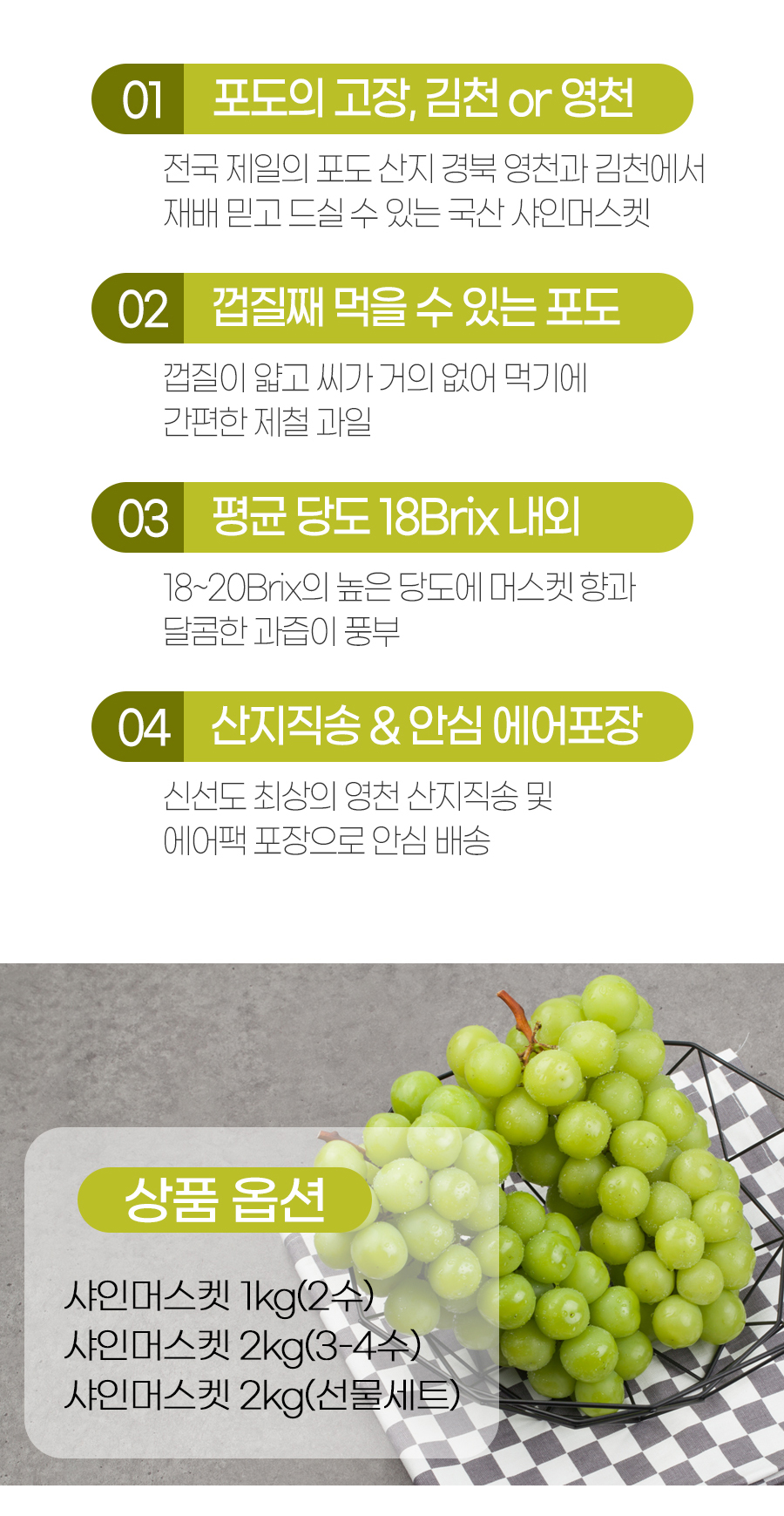신선해서 더 달콤한 고당도 샤인머스켓 1kg 2kg 4kg