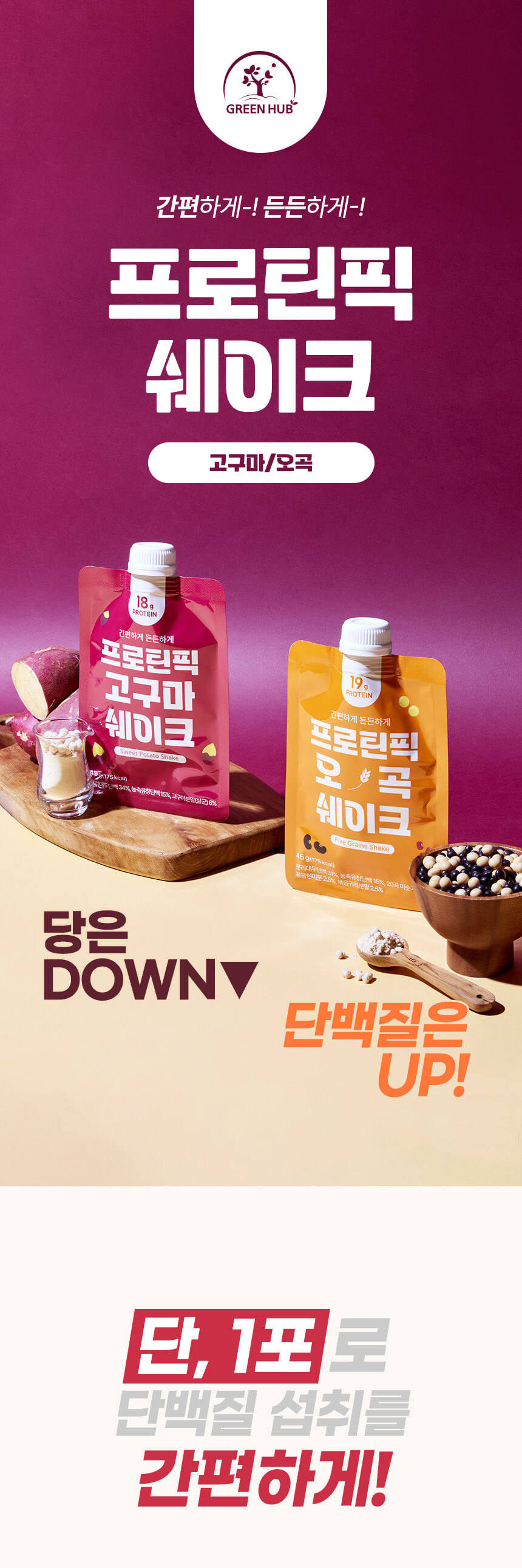 [그린허브] 프로틴픽 단백질 쉐이크 (오곡/고구마)
