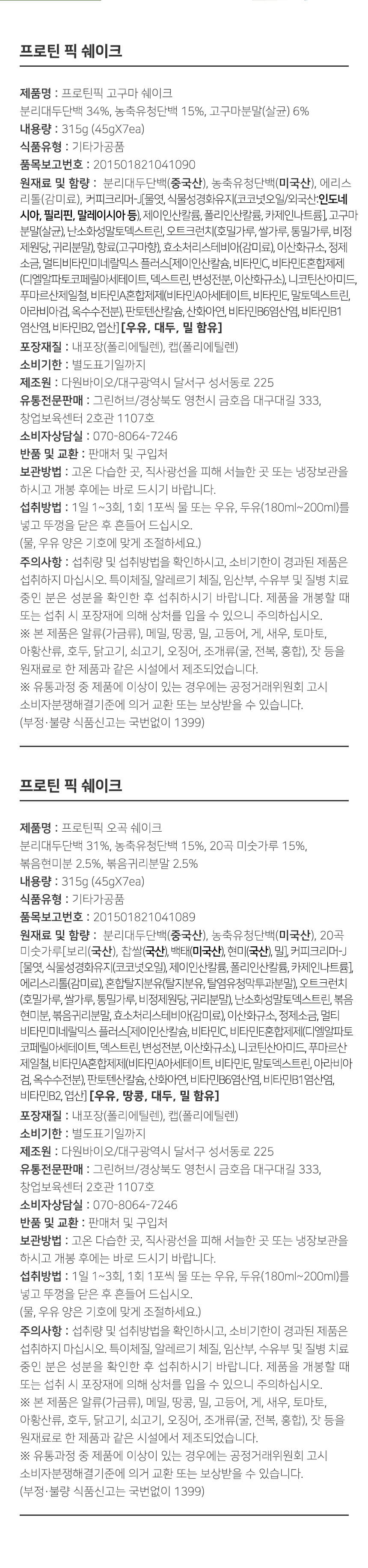 • [그린허브] 프로틴픽 단백질 쉐이크 (오곡/고구마)