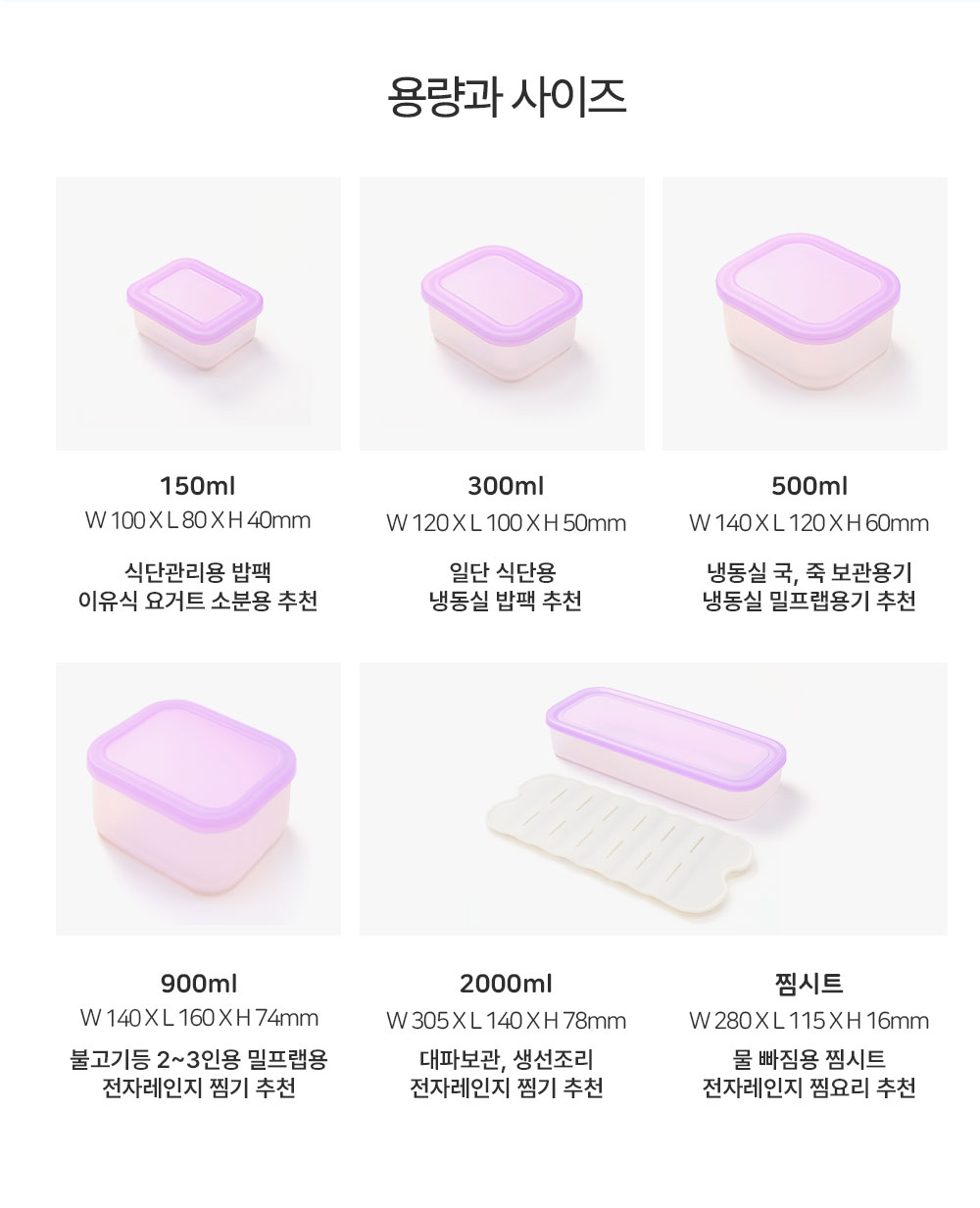 150ml, 300ml, 500ml ,900ml 각 2p