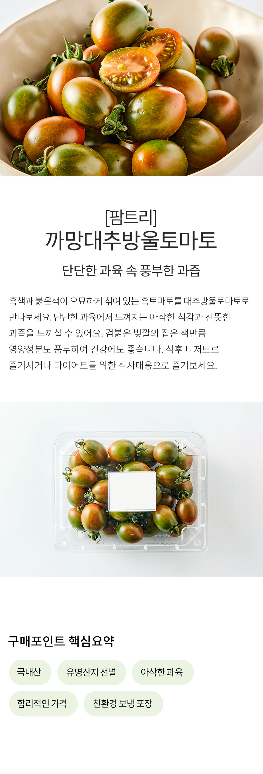 까망대추방울토마토(미니 쿠마토) 500g 수량빼기 수량추가 4,900 원 총 수량 1 개 4,900 원 구매옵션 닫기 찜하기 추가 찜하기 삭제 구매후기 3 상품상세 정기구독 장바구니 정기구독 장바구니 10월09일 입고예정 정기배송 장바구니