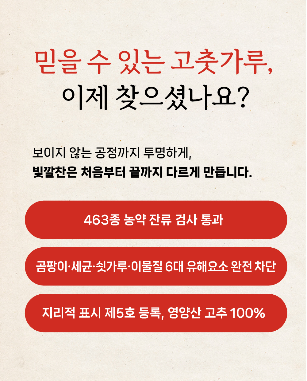 • 경북 영양군 빛깔찬 2025년산 햇 고춧가루 보통맛