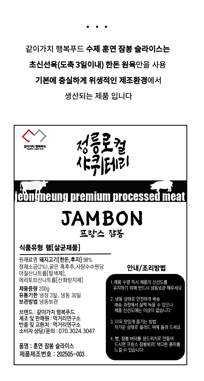 [행복푸드] 수제 훈연 잠봉 슬라이스 200g / 1팩