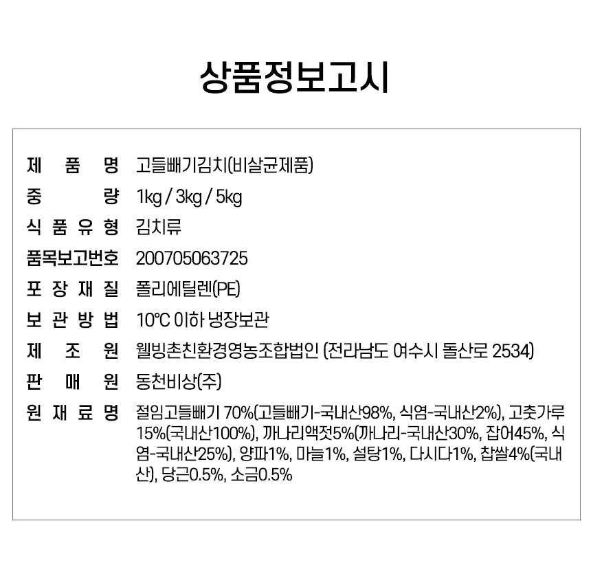 100% 국내산 쌉싸름하고 고소한 전라도 고들빼기 김치 1kg