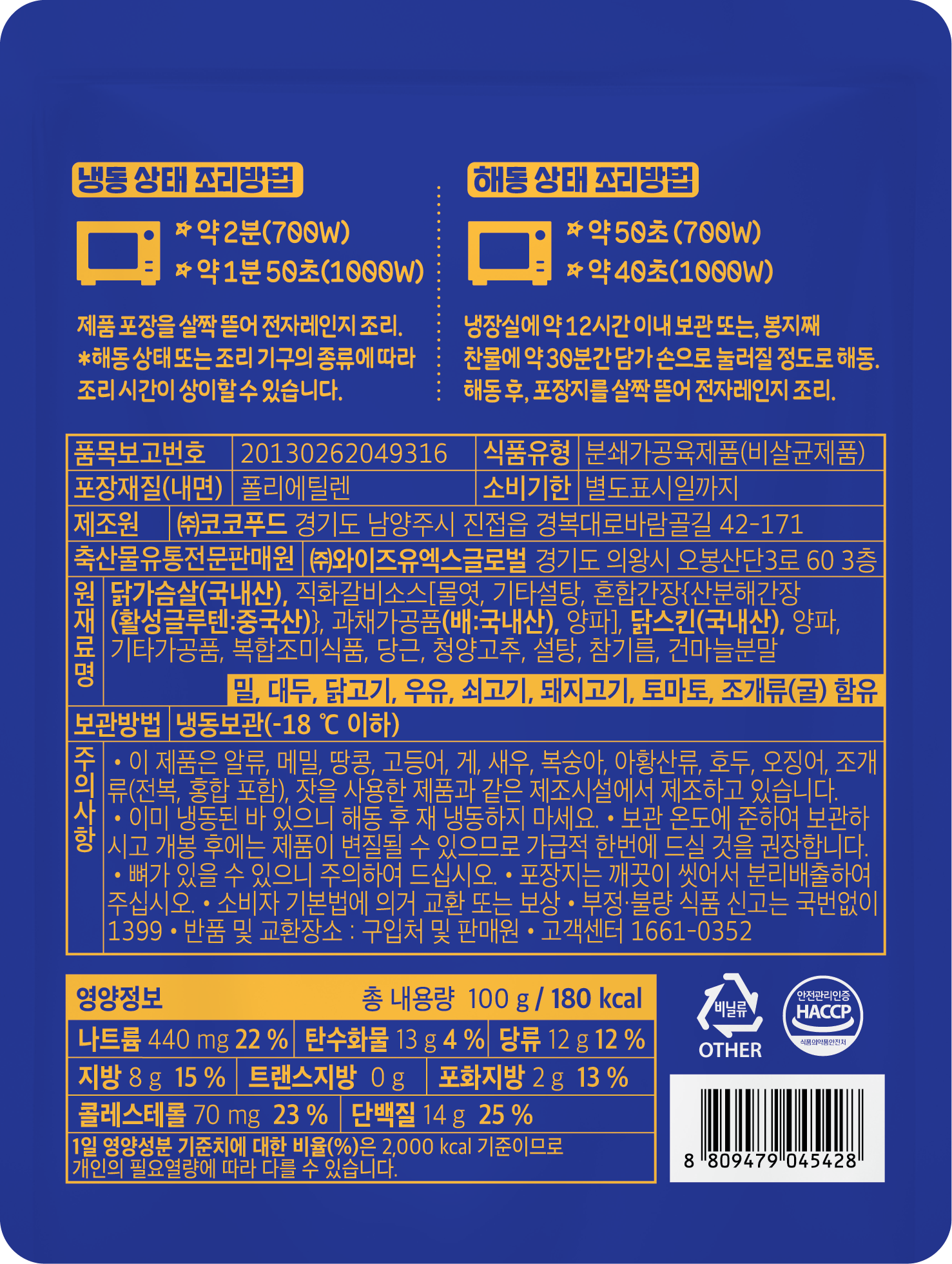 닭가슴살 치킨팝콘 5종 (100g×5팩) 수량빼기 수량추가 10,500 원 총 수량 1 개 10,500 원 구매옵션 닫기 찜하기 추가 찜하기 삭제 구매후기 206 상품상세 정기구독 장바구니 정기구독 장바구니 구매하기 정기배송 장바구니