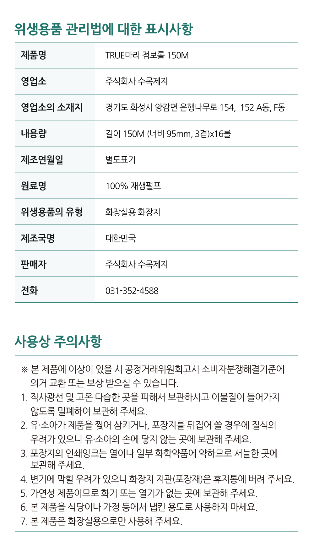 • [수목제지] 트루마리 점보롤 150M 3겹 16롤