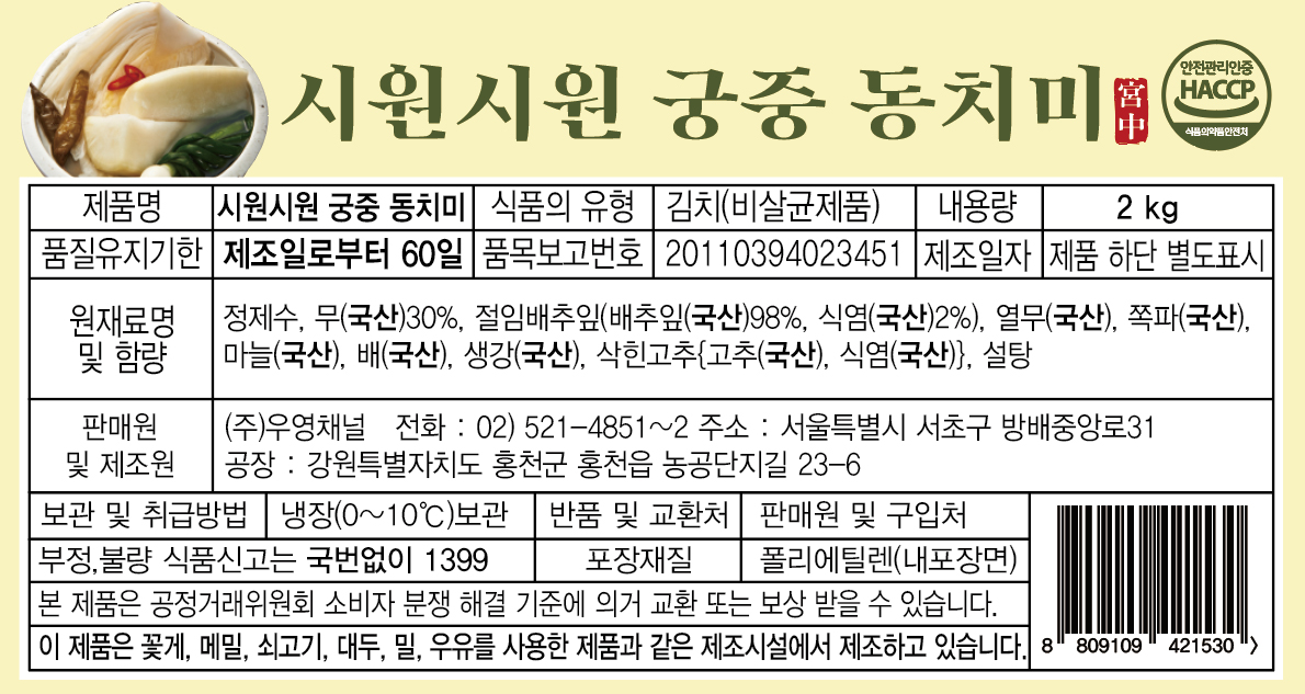 국내산 재료로 만든 동치미 2kg 수량빼기 수량추가 13,900 원 총 수량 1 개 13,900 원 구매옵션 닫기 찜하기 추가 찜하기 삭제 구매후기 상품상세 정기구독 장바구니 정기구독 장바구니 구매하기 정기배송 장바구니