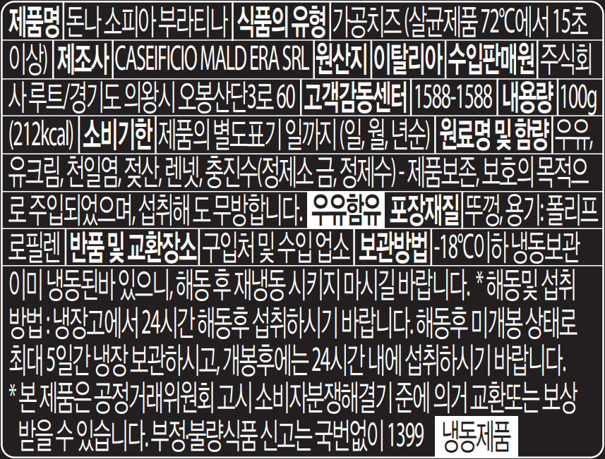 돈나소피아 부라타치즈 2박스 (100g×12개)