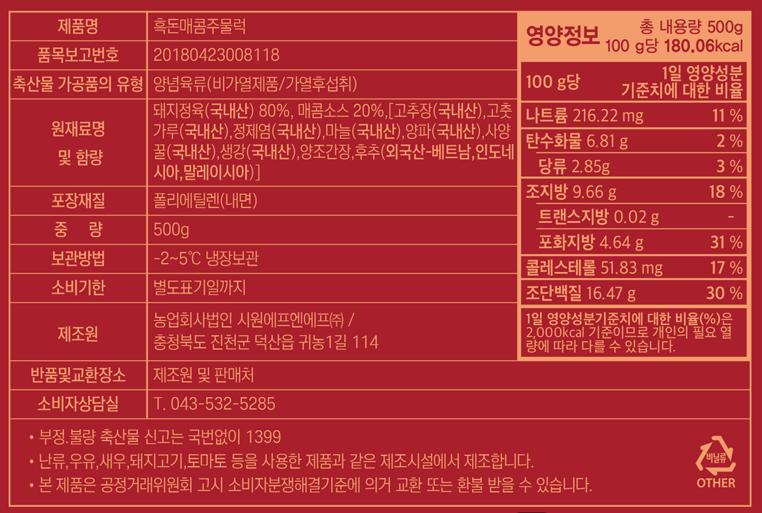 [입점특가] 우리흑돈 고추장 주물럭(500g)