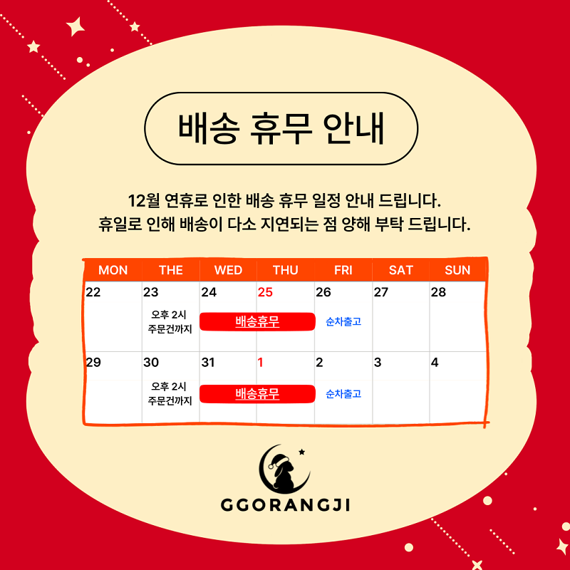 낮12시 택배 마감이며, 평일만 출고가능합니다.(명절, 대체휴무일 등 특이사항 있을 수 있음)