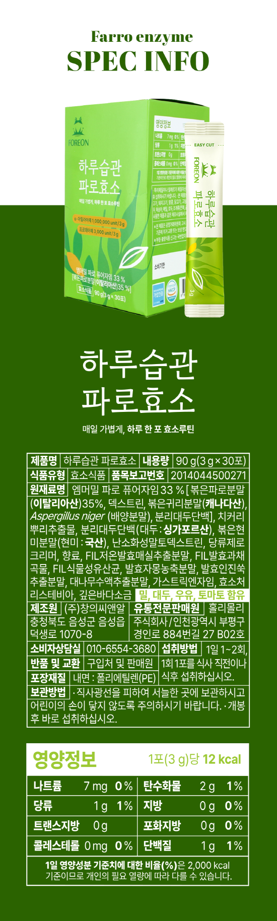 1포(3g)당 12 kcal