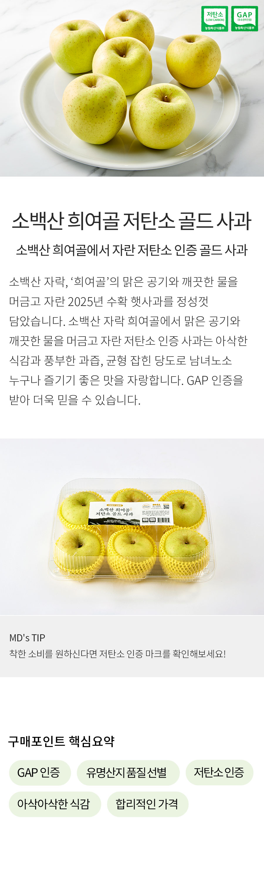 [선별사과]GAP소백산 희여골 저탄소 골드 사과 1.4kg(6입/팩)
