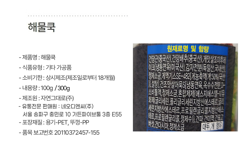 제조원 : 자연그대로(주) / 경기도 양주시 백석읍