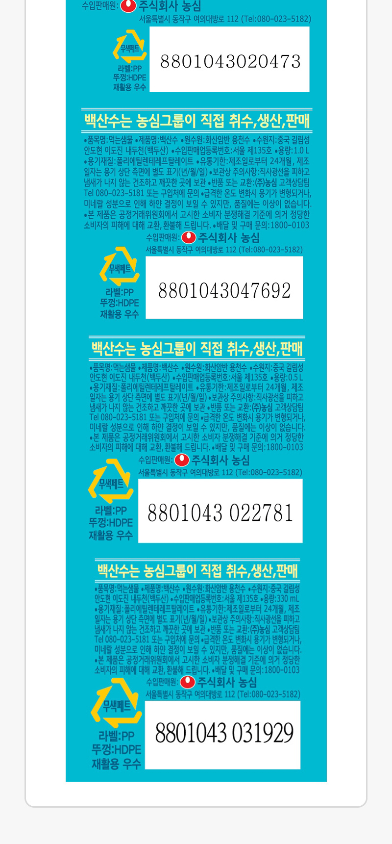 • 백산수 무라벨 생수 (2LX12/24병/ 1LX24병) 샘물