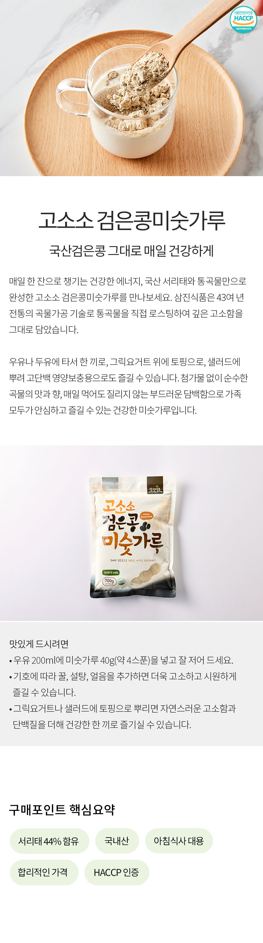 고소소 검은콩 미숫가루(700g) 수량빼기 수량추가 9,900 원 총 수량 1 개 9,900 원 구매옵션 닫기 찜하기 추가 찜하기 삭제 구매후기 1 상품상세 정기구독 장바구니 정기구독 장바구니 구매하기 정기배송 장바구니