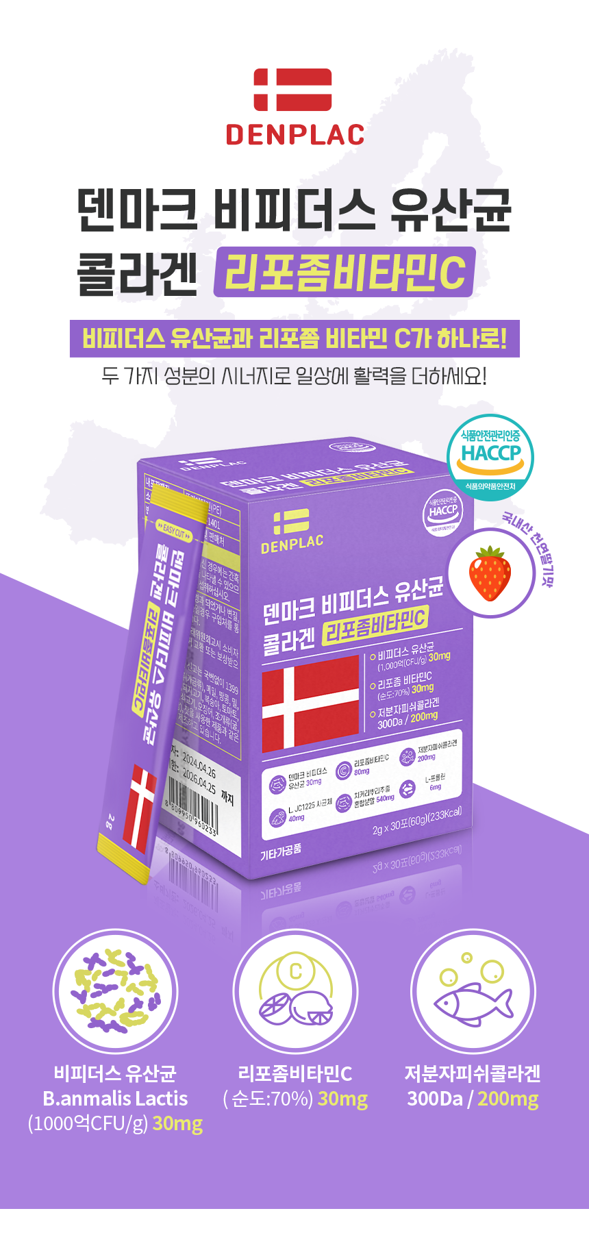 덴마크 비피더스 유산균 콜라겐 리포좀 비타민C