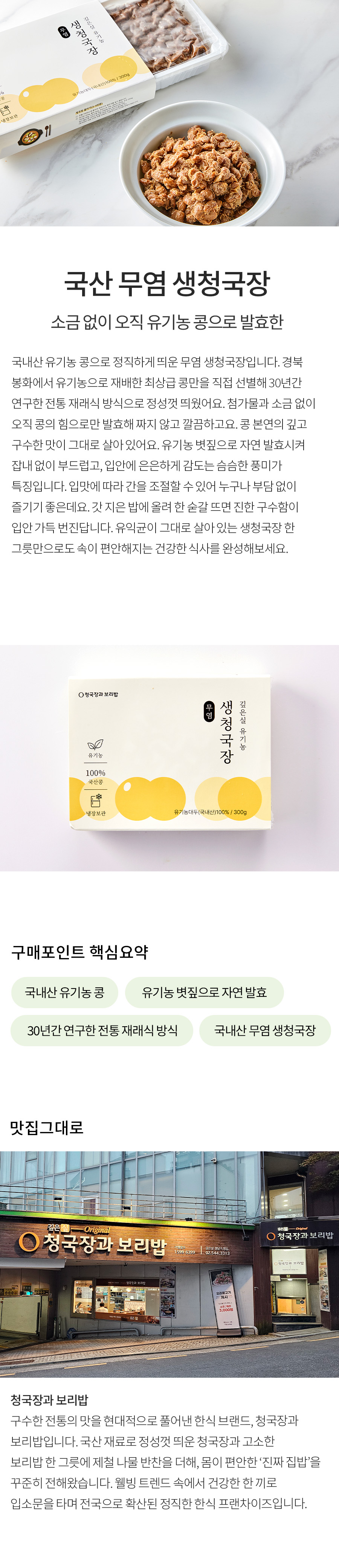 [입점특가] 유기농 국산콩 100% 무염 생청국장(300g)