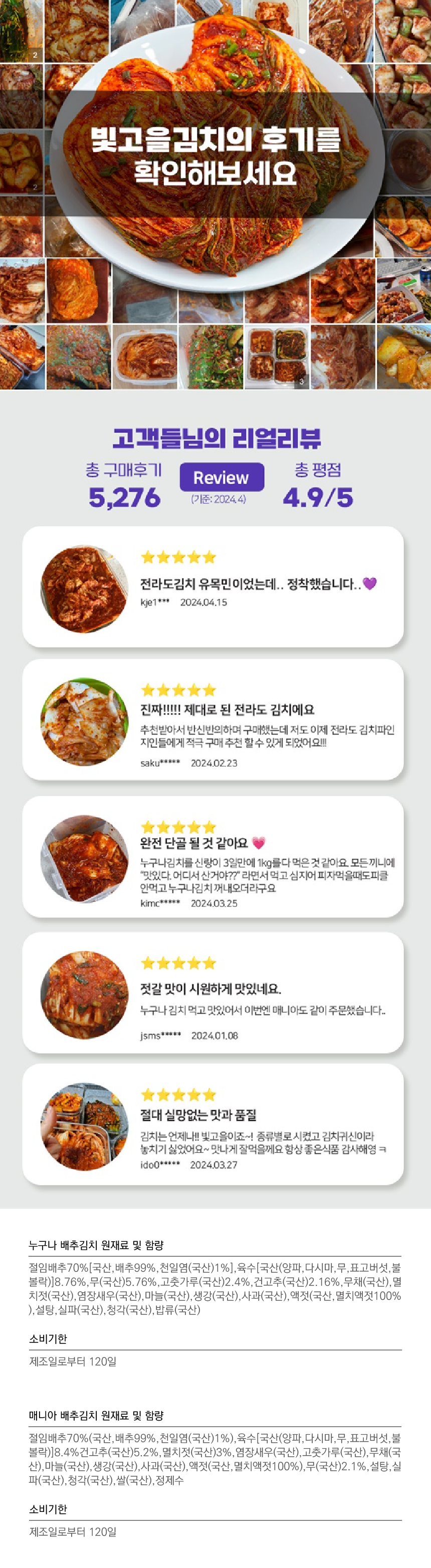 대한민국 김치품평회 수상작 ▶️ 당일제조 양념듬뿍 깊고진한 감칠맛, 특제육수, 비법젓갈, 맛있게 즐기는 전라도김치