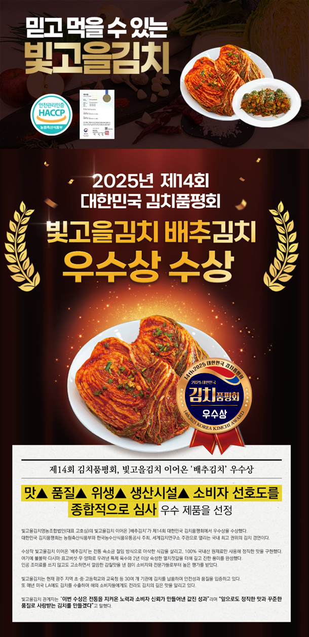 • [품평회 수상] 빛고을김치 전라도 국산 배추김치 포기김치 (1/3/5kg)