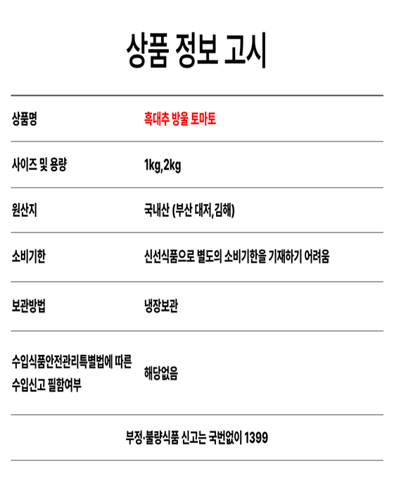 • 당일수확 새콤달콤 흑 대추 방울토마토 1KG