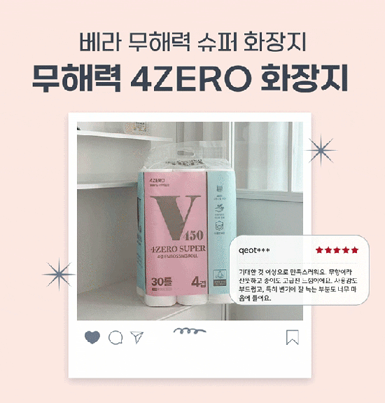 • [VERA] 베라 4ZERO 무해력 슈퍼 (4겹엠보싱 25MX30롤) 두루마리 화장지 휴지