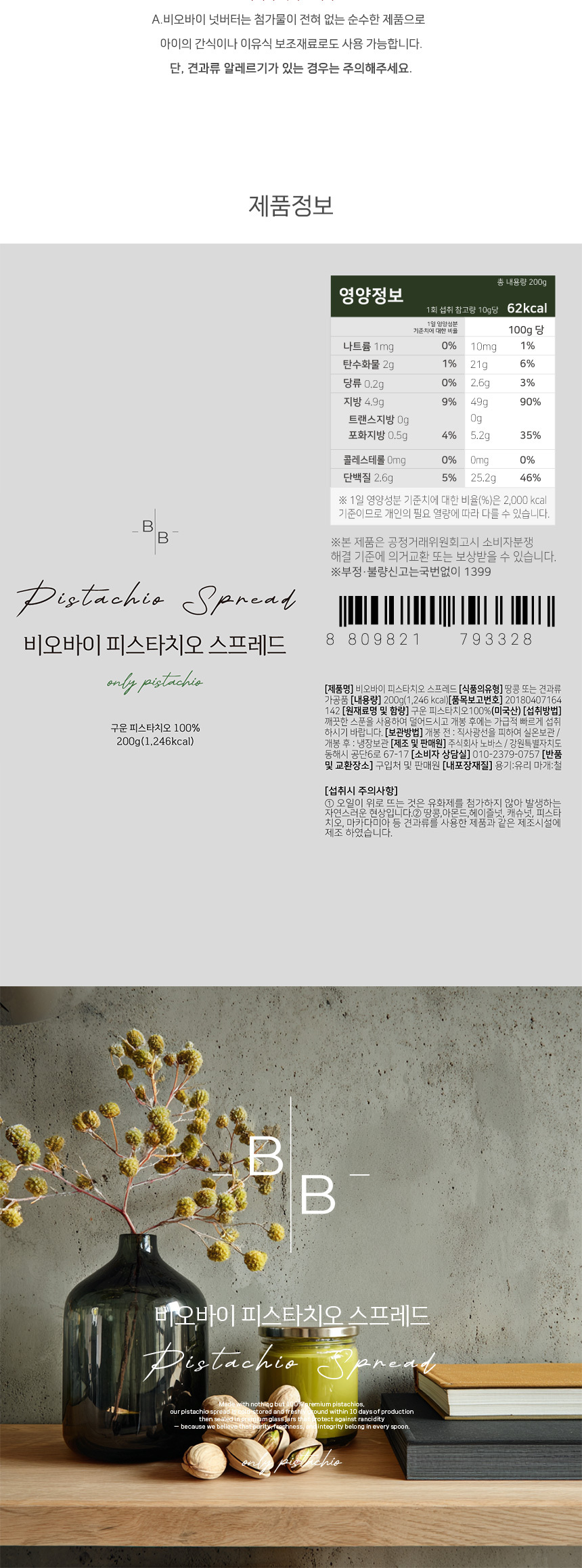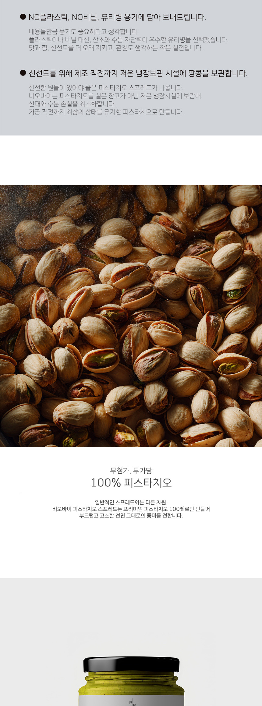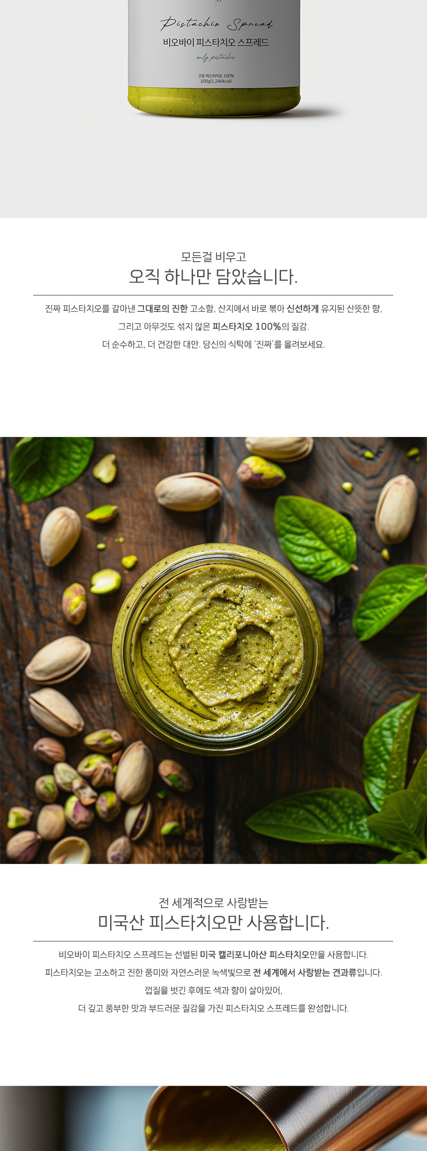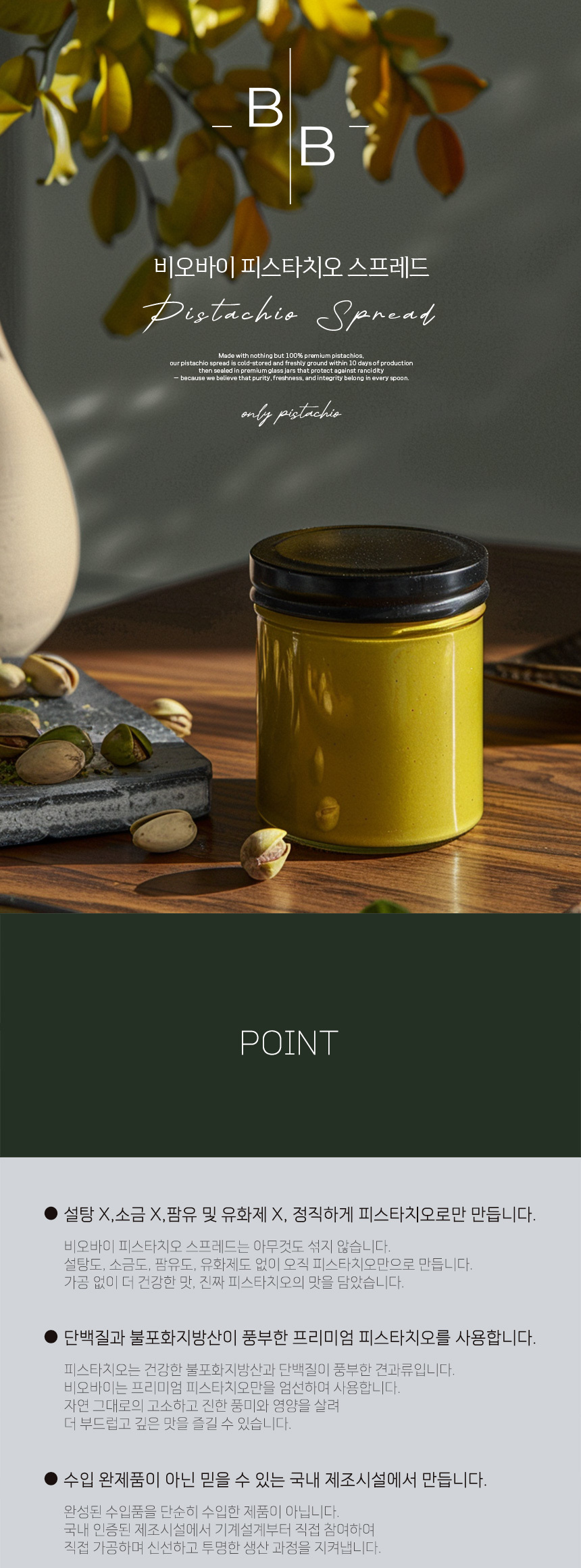 • 비오바이 무가당 피스타치오 스프레드 200g 1병 무첨가 국산유리병