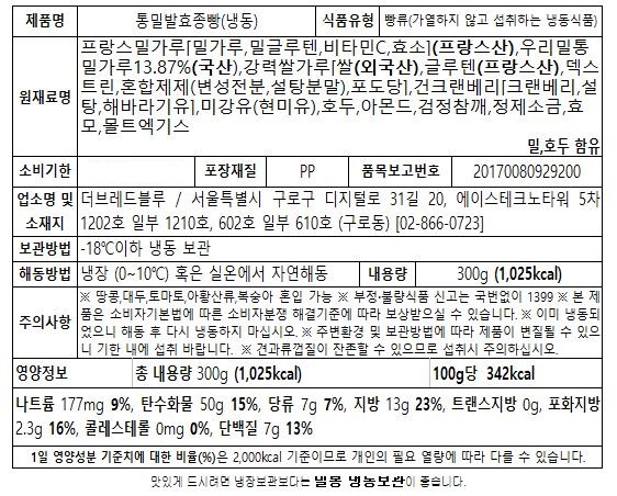 빵류(가열하지 않고 섭취하는 냉동식품)