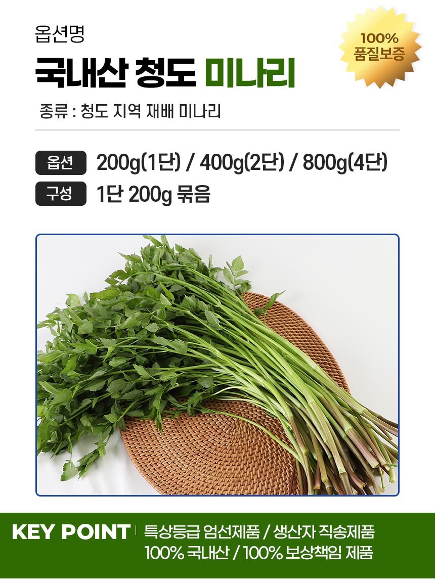 • 국내산 청도 한재 미나리 1단 200g 1-4단