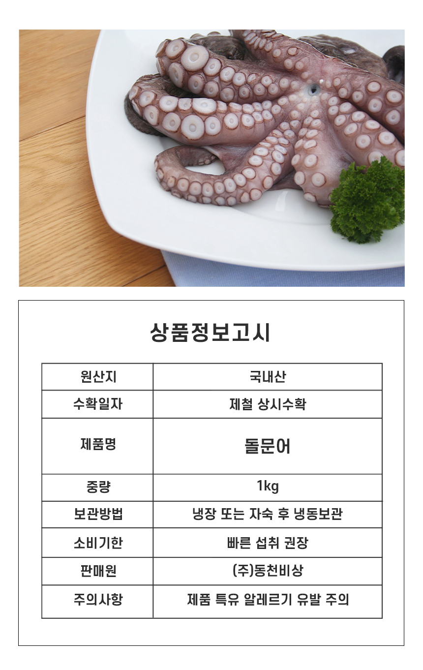 남해 산지직송 당일조업 돌문어 자연산 생물 문어 1kg 2kg