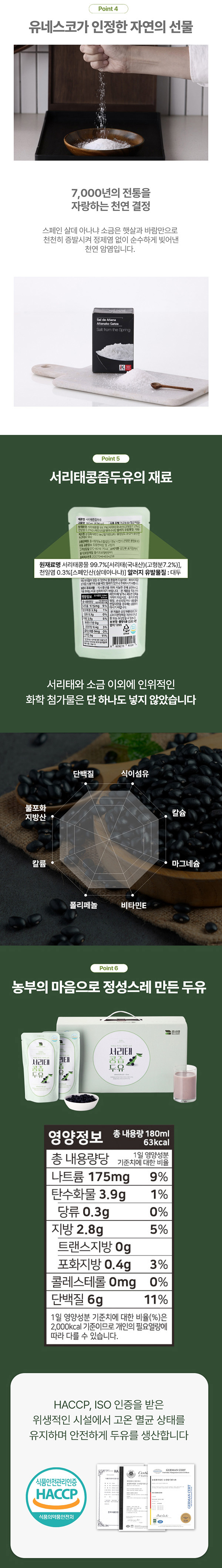 서리태콩물 99.7%[서리태(국내산)(고형분7.2%)], 천일염 0.3%[스페인산(살데아나냐)]