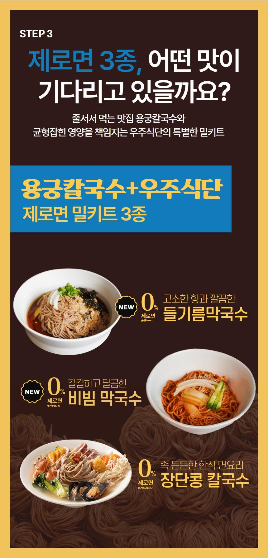 제로면 밀키트 3종 (들기름/비빔/칼국수)