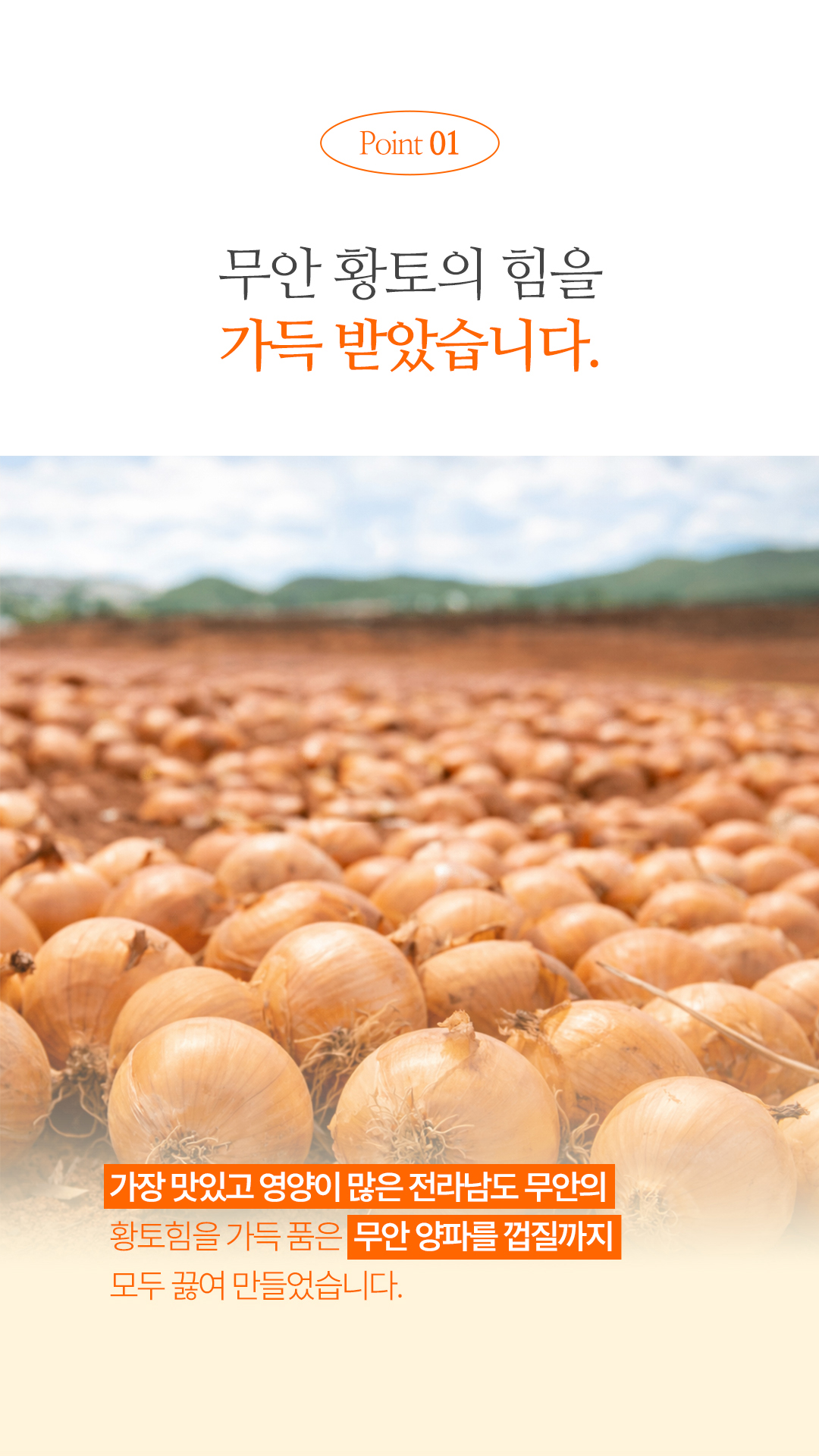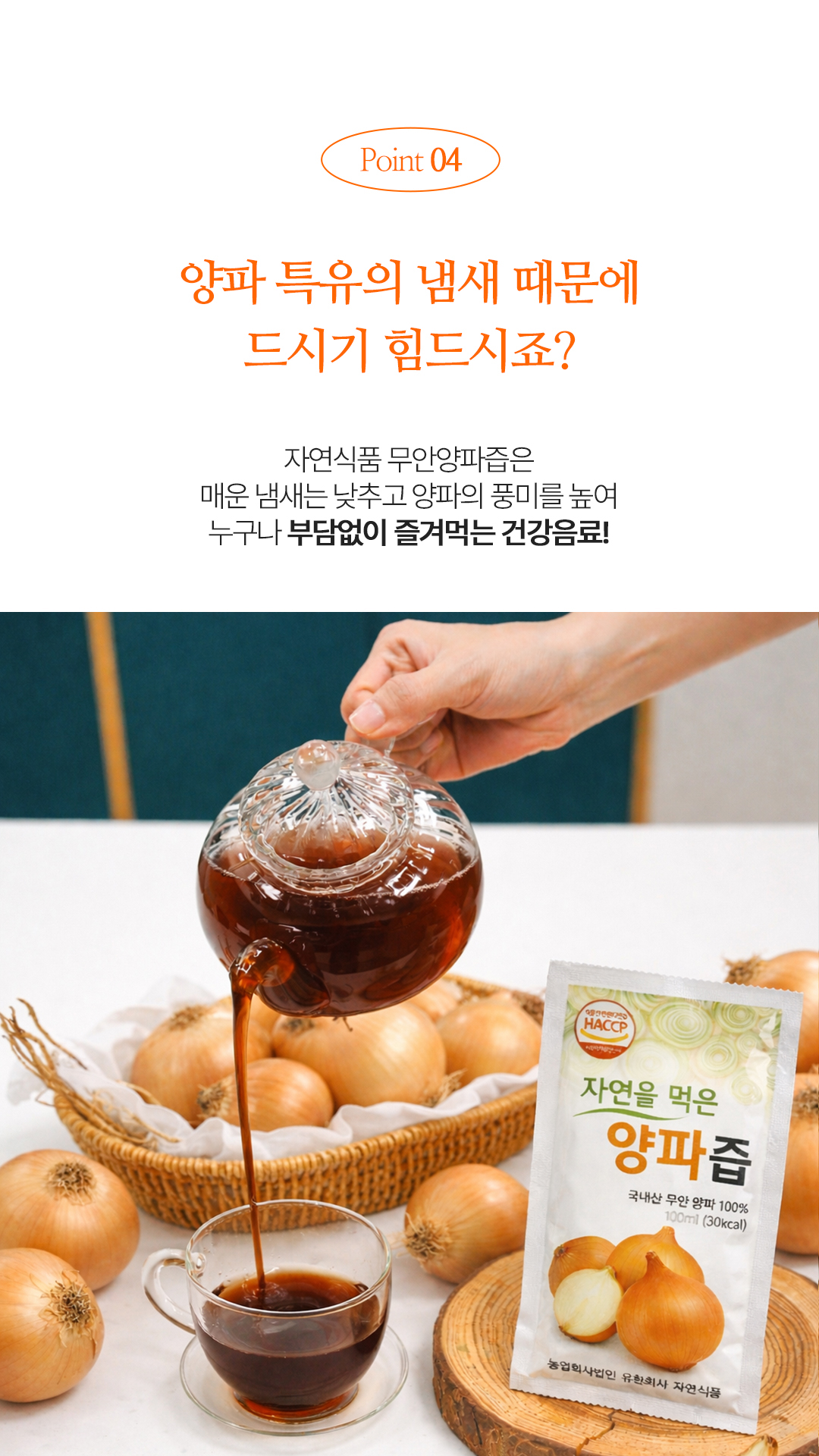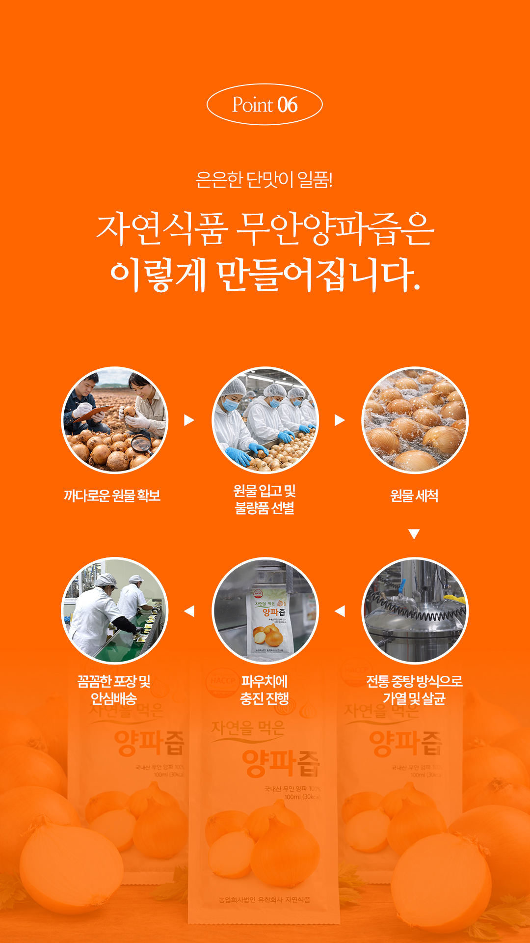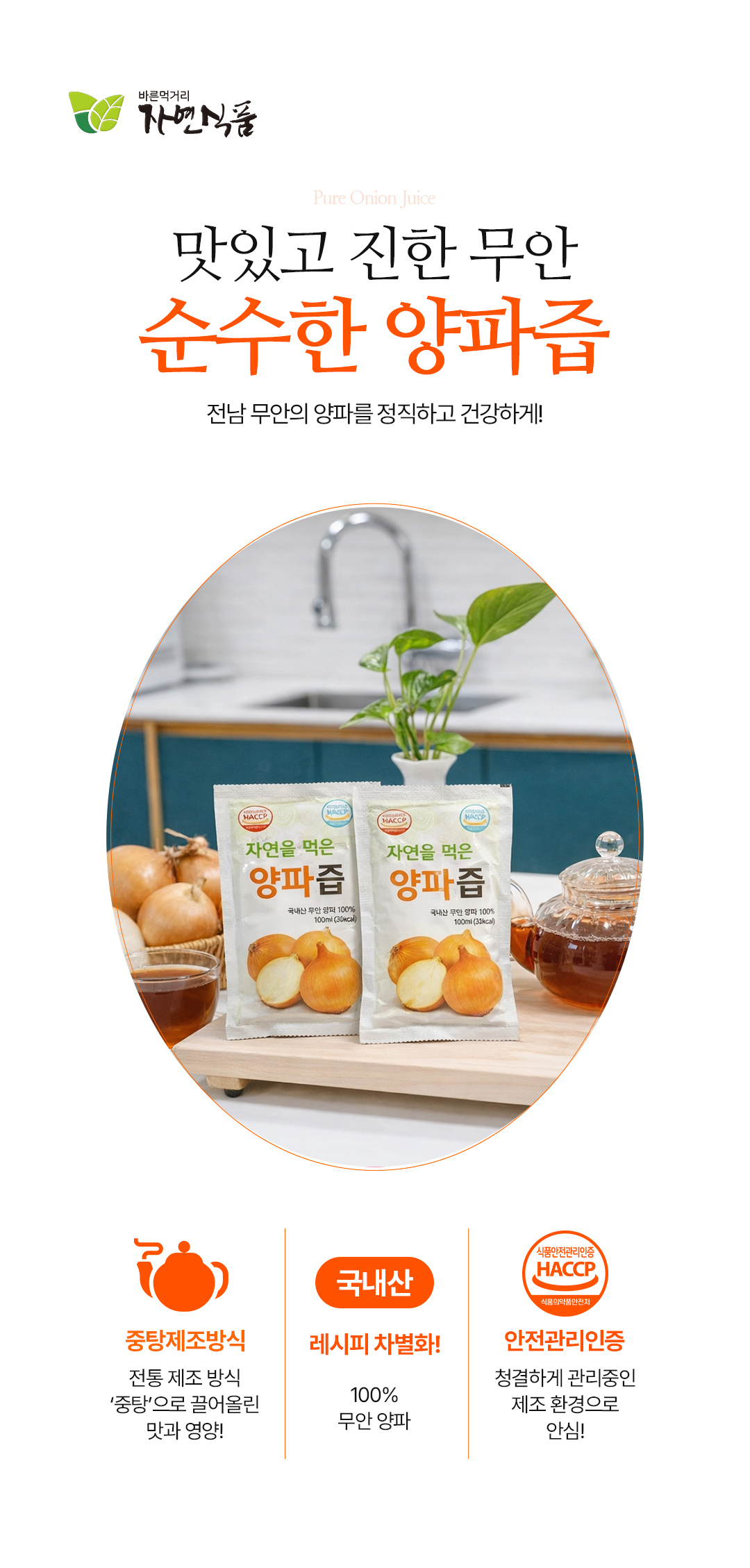 중탕 방식으로 만들어 전라남도 무안의 양파 그대로 느낄 수 있는 양파즙