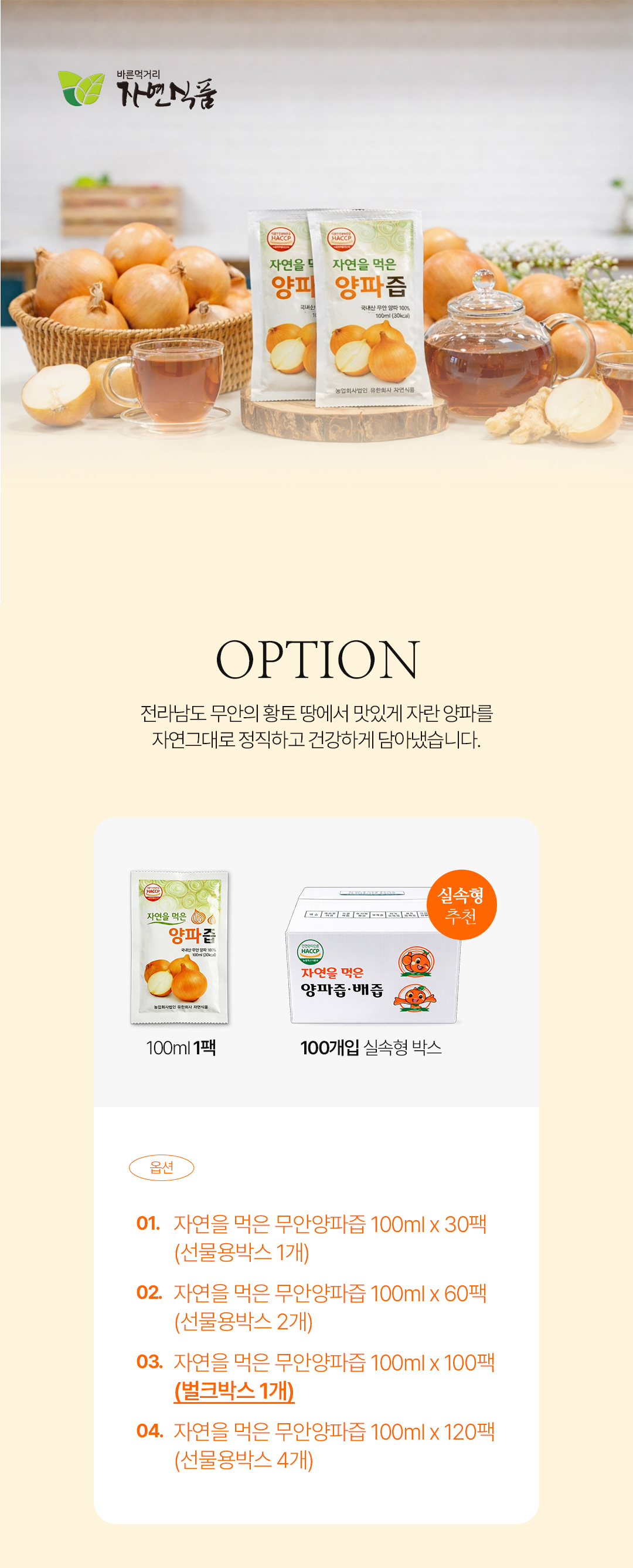 자연을 먹은 무안 양파즙 100ml x 100팩 / HACCP