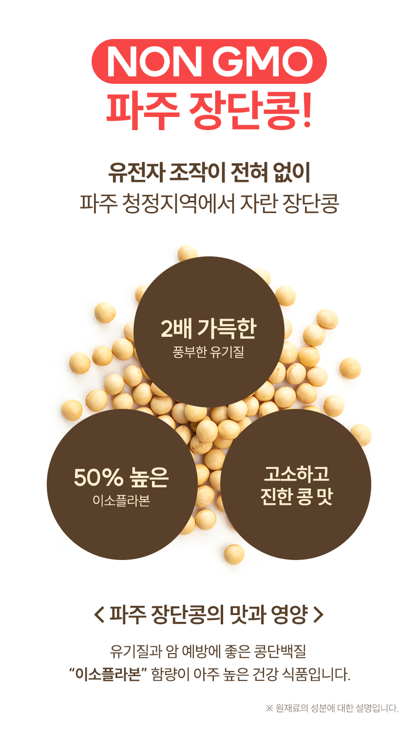 장단콩 5%(국내산), 보리(국내산), 쌀(외국산), 현미(외국산), 볶음귀리(캐나다산), 상황버섯, 잔탄검, 옥배유