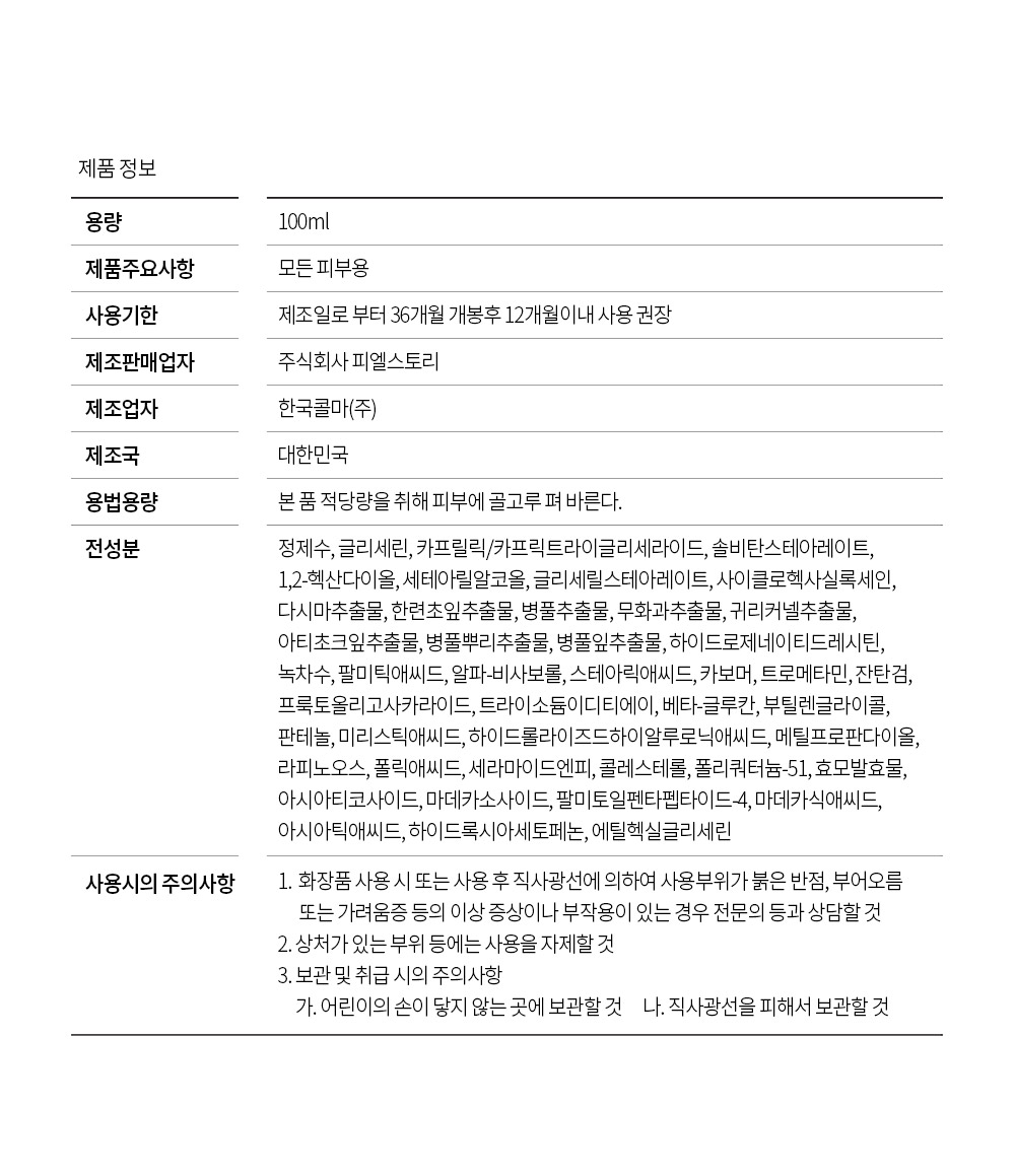 제조업자 : 한국콜마(주) l 판매업자 : 주식회사 피엘스토리