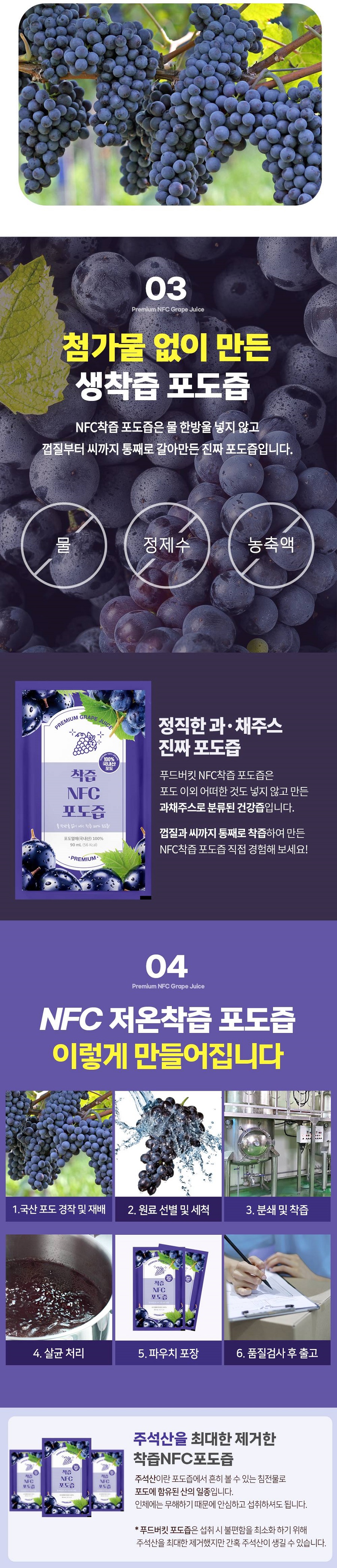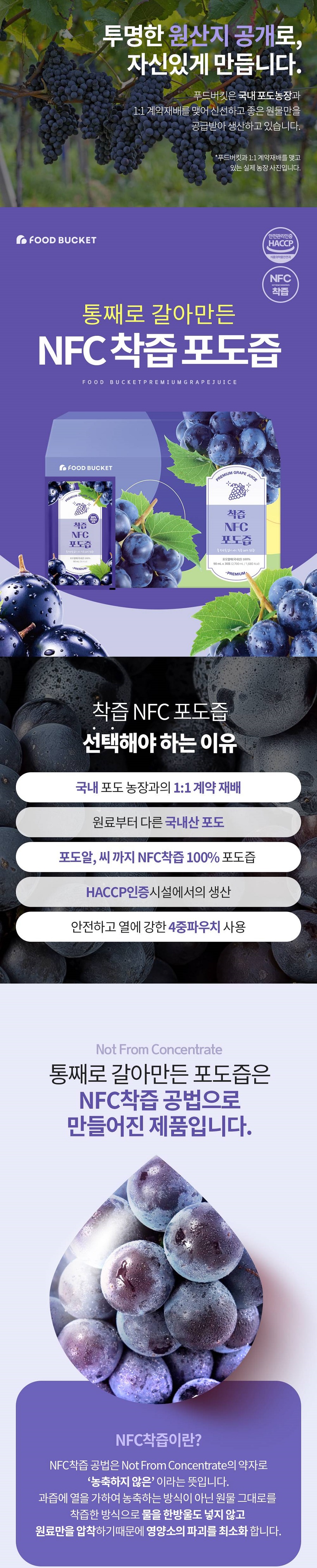 • 푸드버킷 물없이 갈아만든 국내산 NFC 착즙 포도즙 30포, 1개