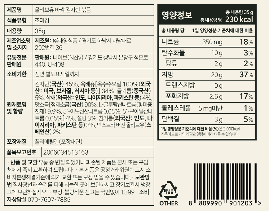 • 네이브 올리브유 바싹 김자반 볶음 (35g)