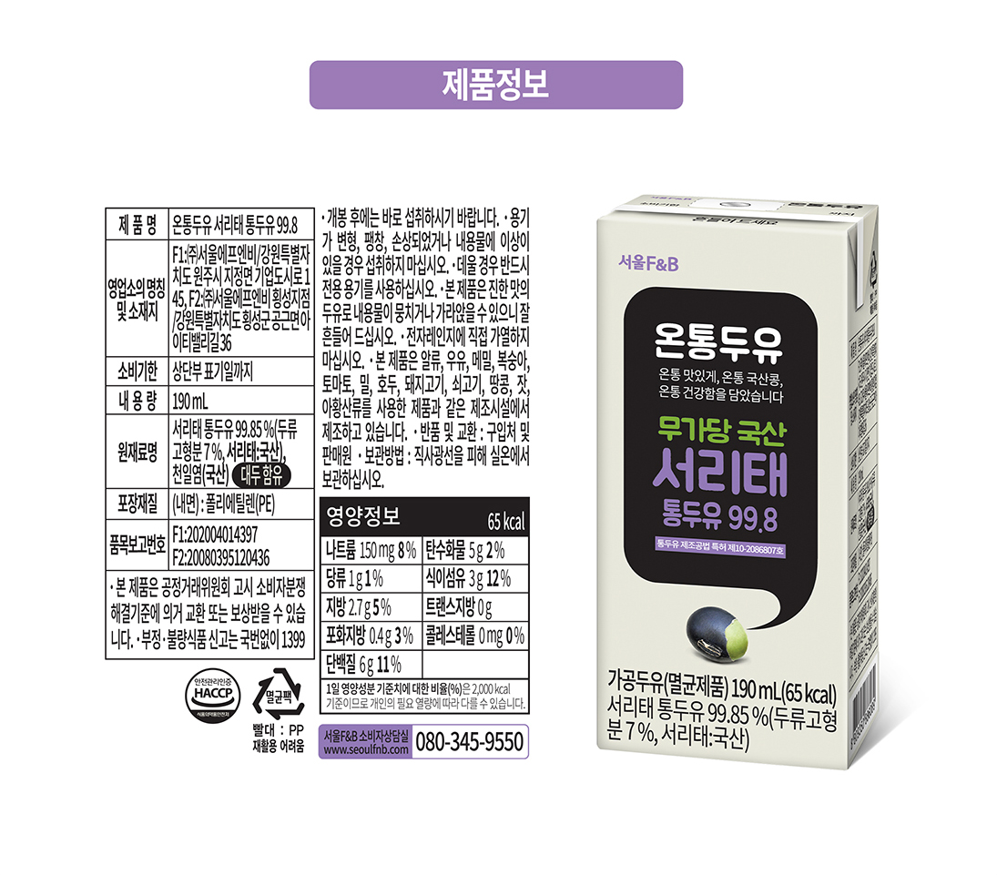 무가당 온통두유 서리태 통두유 99.8 (190mL x 24입)