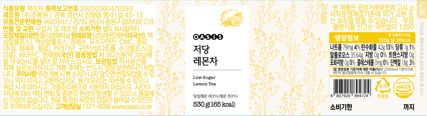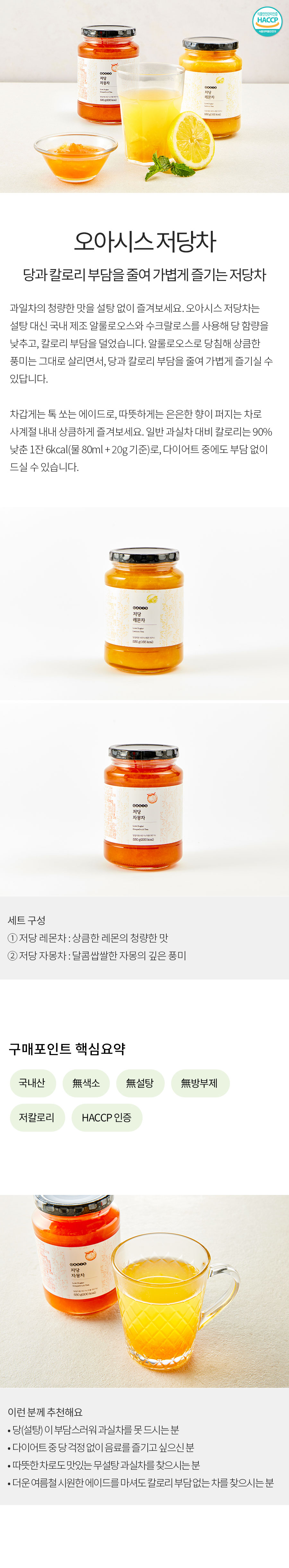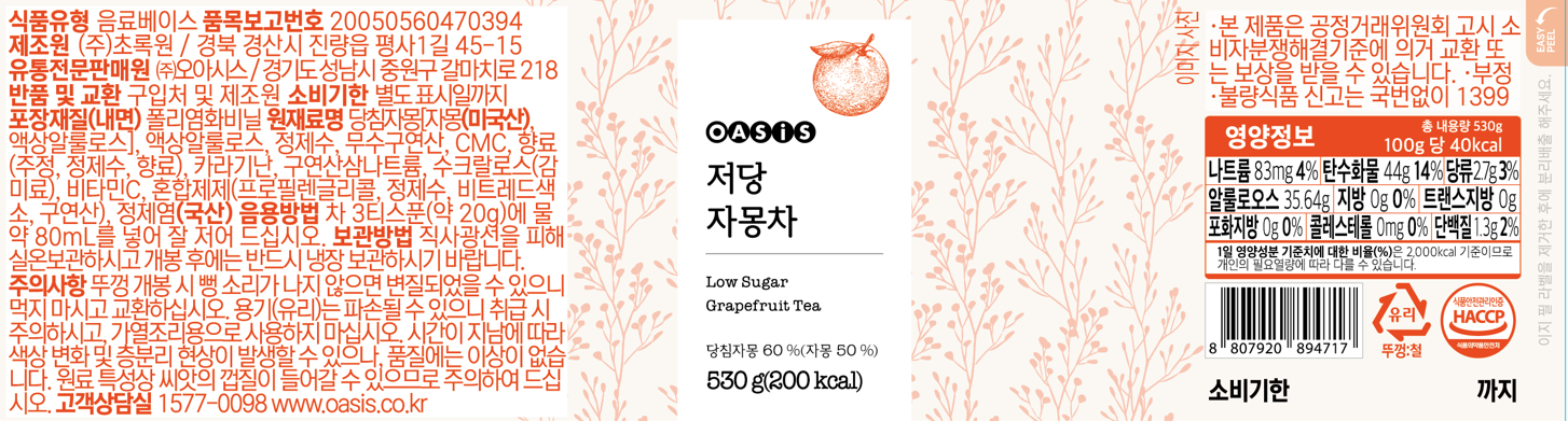 [2입 세트 할인] 오아시스 저당 레몬차 + 자몽차