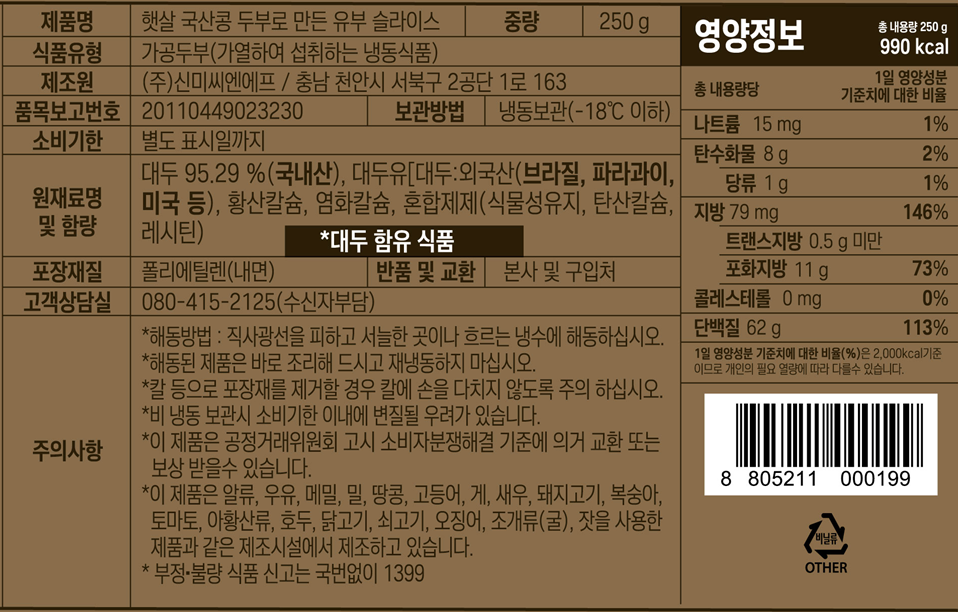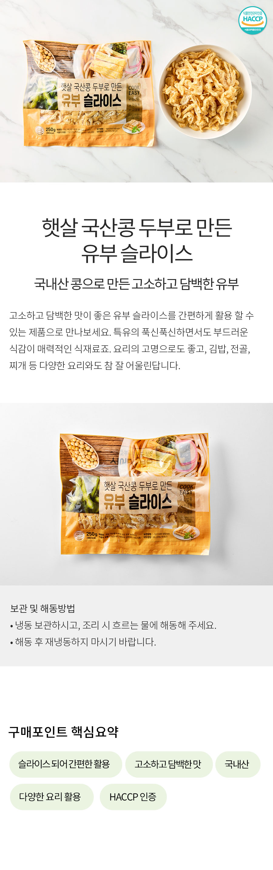 [입점 특가] 햇살 국산콩 두부로 만든 유부 슬라이스 (250g)