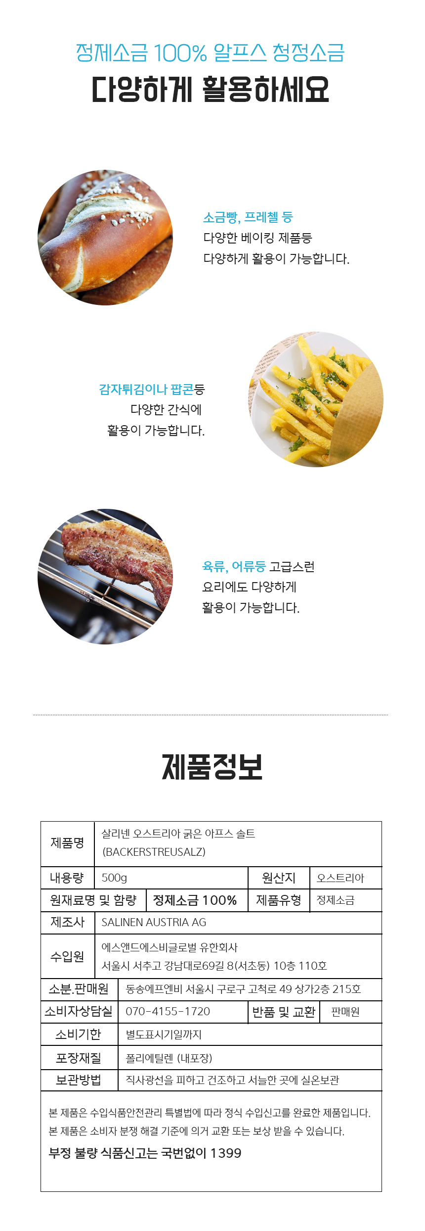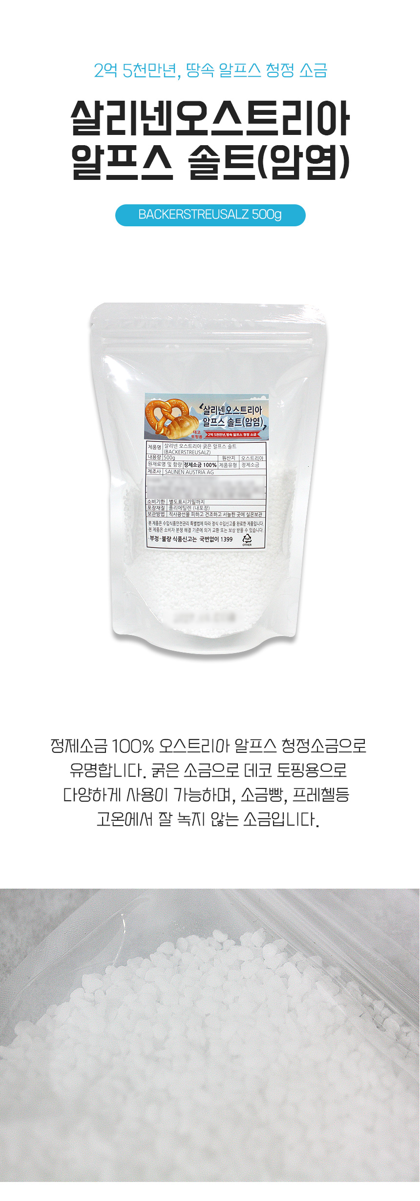 • 살리넨 알프스 정제소금 펄솔트 500g 굵은입자 시오 소금빵 프레첼 토핑 데코