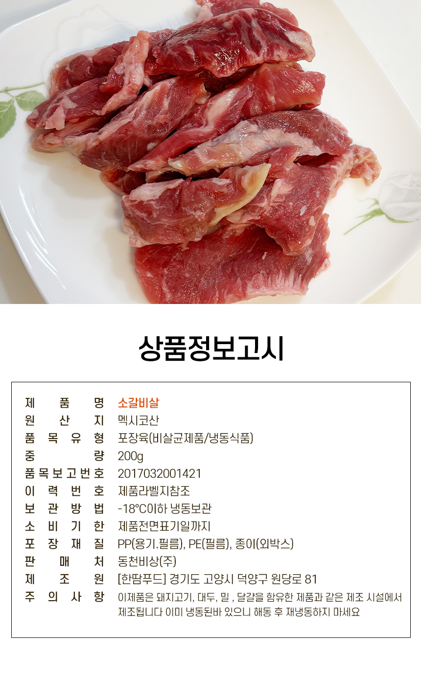 육즙가득 부드러운 소갈비살 갈비살 소갈비 소고기 구이 200g 2팩 4팩
