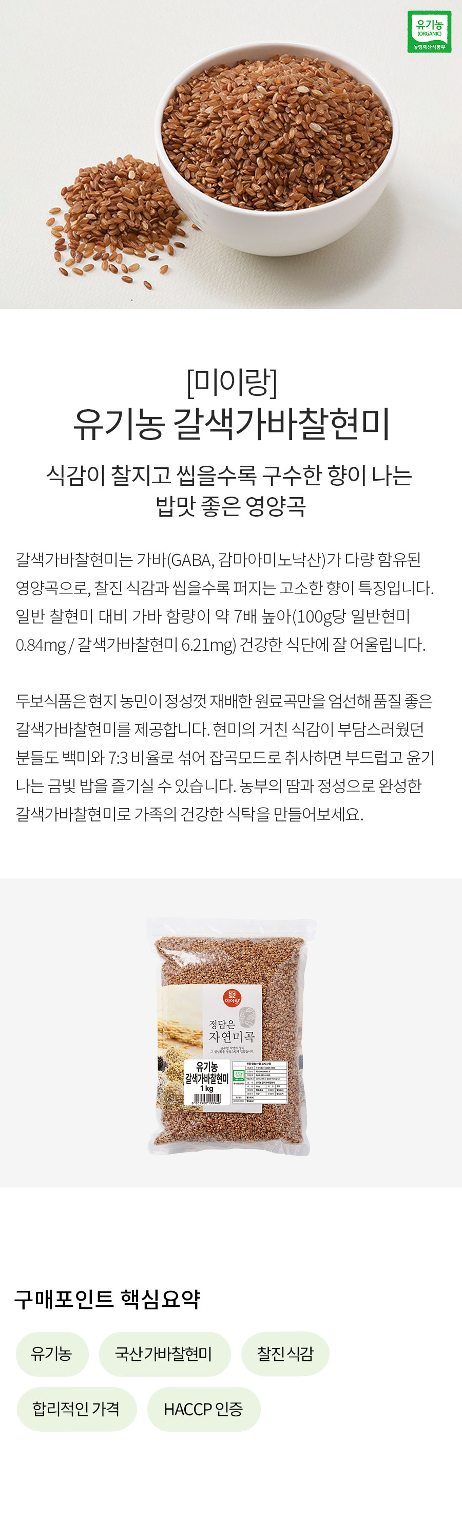 미이랑 유기농 갈색가바찰현미 1kg (2025년)