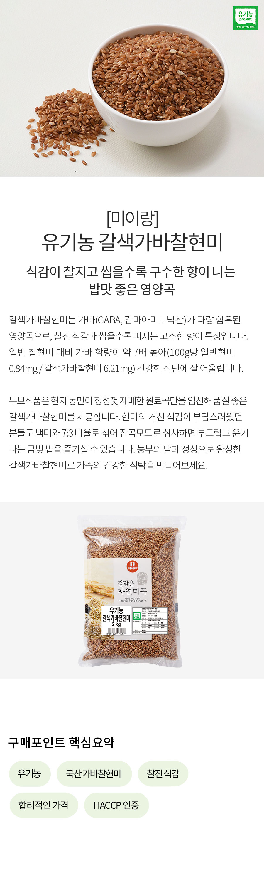 [신규] 미이랑 유기농 갈색가바찰현미 2kg (2025년)